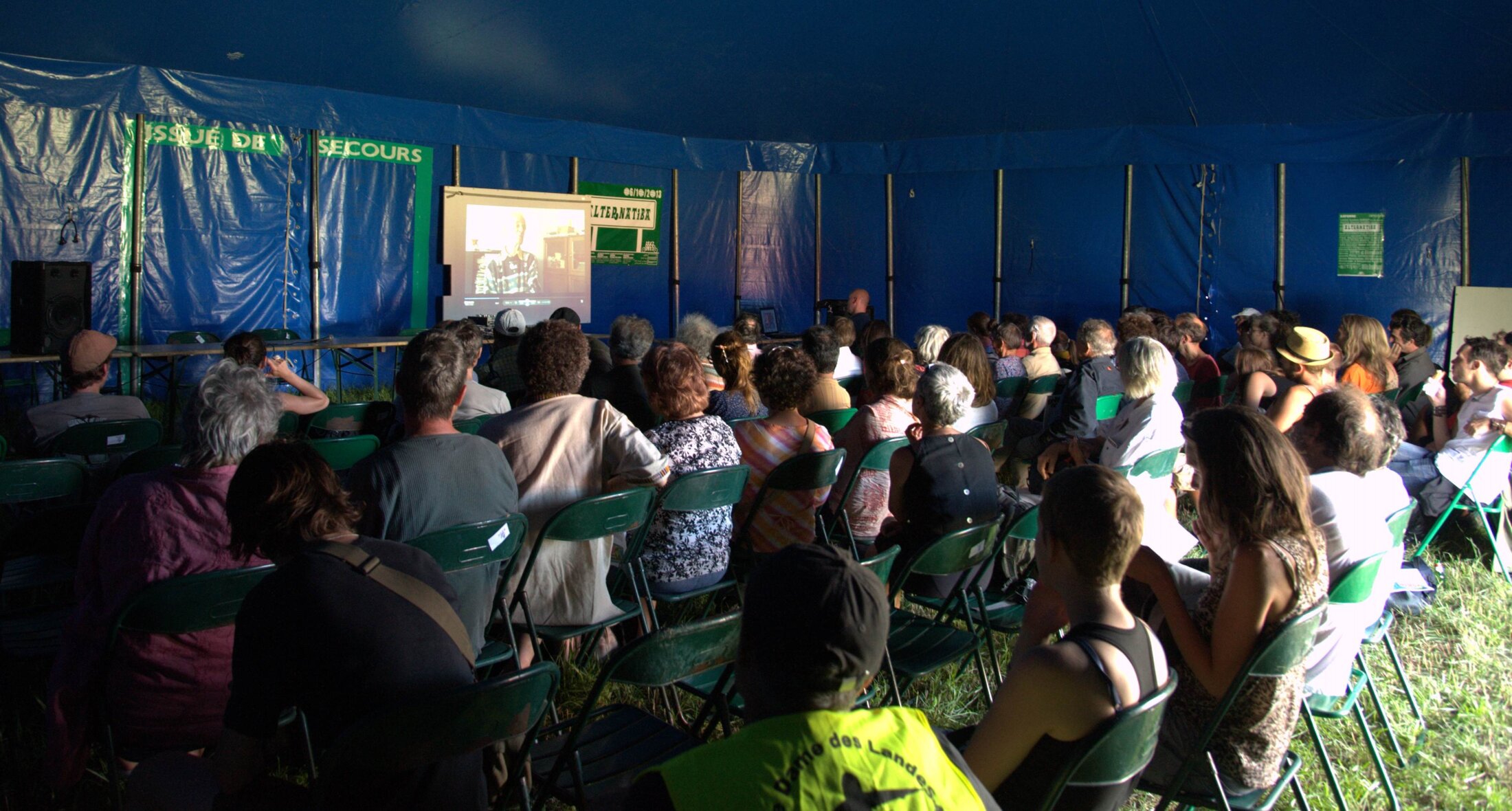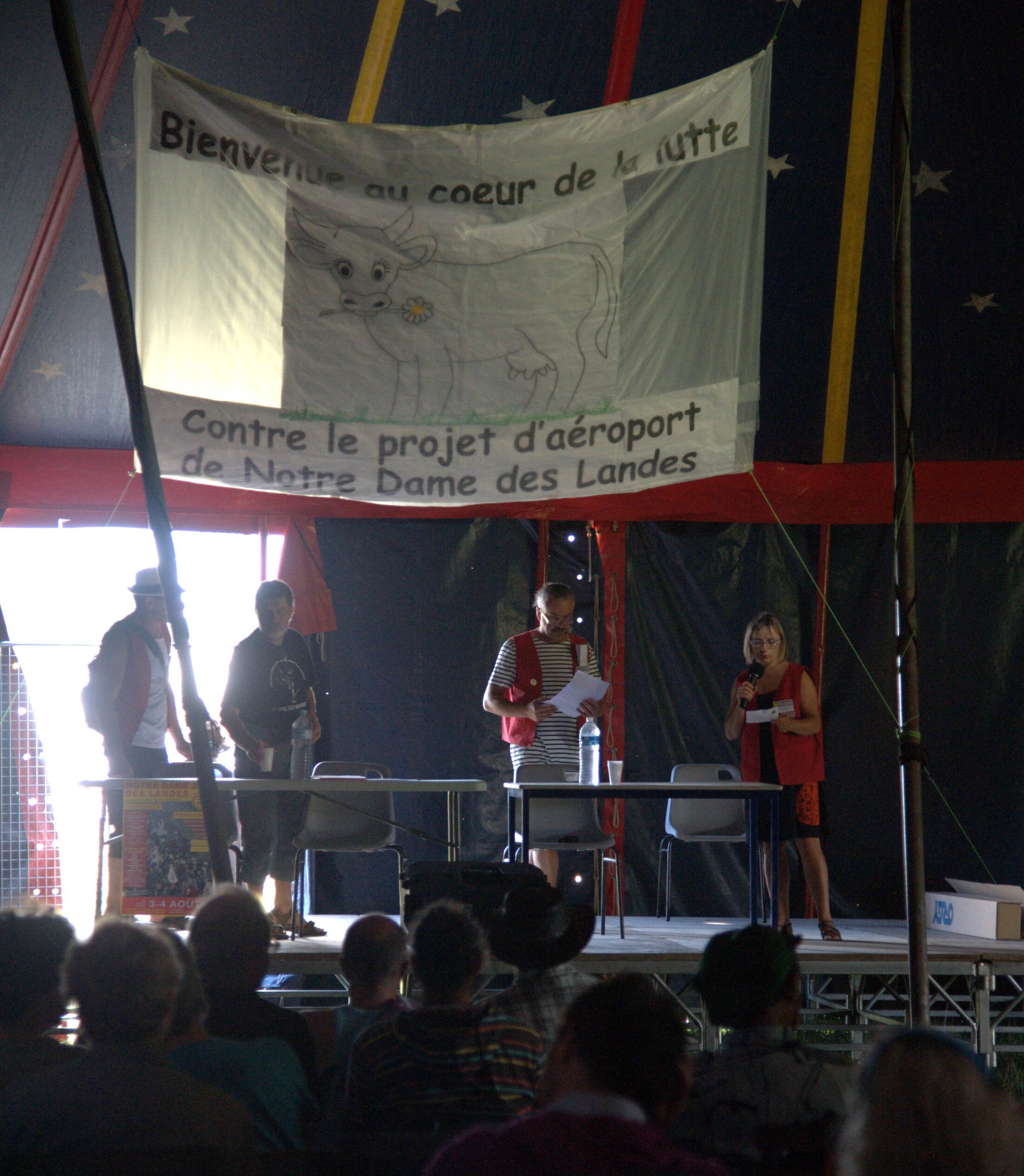 Ensuite nous avons eu le loisir de circuler à travers le vaste champ de chaume et y découvrir les débats sous les chapiteaux, les stands des associations, les panneaux des comités de soutien, les concerts.