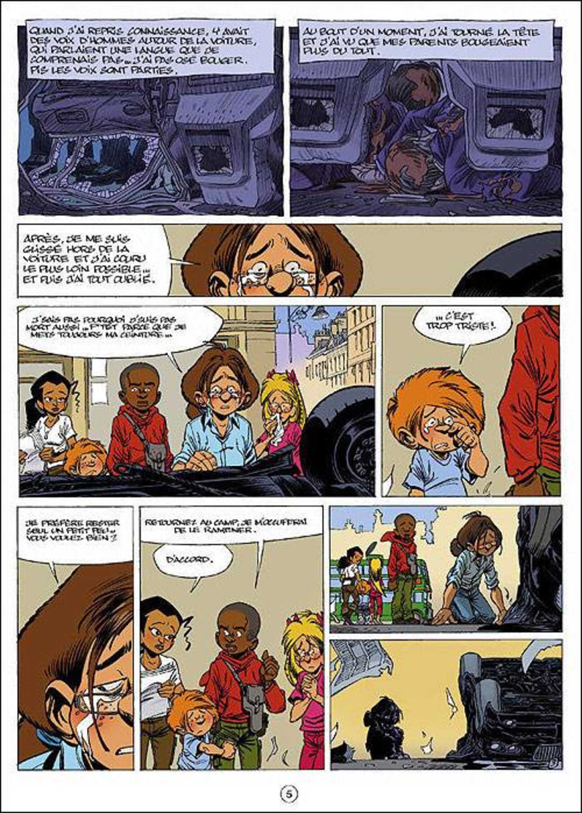 Le quatrième tome nous ramène en ville, pour retrouver des souvenirs laissés en chemin, des bribes d’images refaisant surface, Yvan, Leila, Dodji reviennent avec leurs peurs, leurs questions, continuant la quête du pourquoi, du comment. Cherchant – comme le lecteur – à découvrir la vérité sur leur sort. Vérité qui sera révélée dans le tome 5.