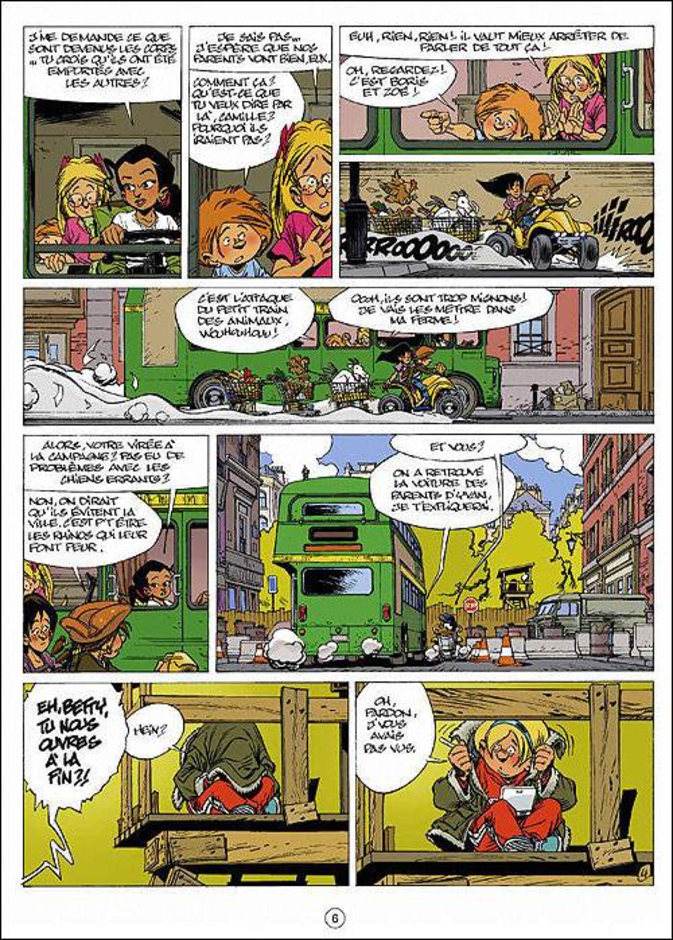D’un album à l’autre, des thèmes différents sont développés. Dans le premier, c’est bien sûr celui de la solitude, dans le tome 3 avec la communauté d’enfants que les cinq héros rencontrent, celui du dirigisme, voire du fascisme…FV : j’aurais du mal à dégager des thèmes précis pour chaque album, mais c’est vrai que la série va explorer une ou des thématiques de fond. A savoir : nos réactions humaines face à des situations exceptionnelles. Maintenant quand j’écris un album, je ne me dis pas « je vais traiter tel ou tel sujet », je préfère me laisser porter par l’histoire telle qu’elle est en train de se construire. Une fois que je vois apparaître éventuellement une thématique, je vais la souligner, mais le but n’est pas de faire une thèse, d’être démonstratif. L’action est là, l’aventure… dans le tome 4 on voulait introduire ces personnages d’animaux, de singes qui se comportent de façon énigmatique, très étrange. C’était ça qui nous guidait, avec au passage une référence à une certaine forme de littérature ou de cinéma, comme La Planète des singes par exemple. Mais je préfère raconter une histoire ou le jeune lecteur ait sa propre lecture, plutôt que de se voir asséner des vérités. Je ne veux pas être sentencieux. Je veux que le lecteur lise ce qu’il a envie d’y lire par rapport à ses références, à son monde. Ce n’est pas un récit moralisateur, mais il y a des valeurs. Si l’on doit parler d’une thématique centrale, c’est le fait qu’ils sont seuls mais ensemble. C’est primordial pour moi, je trouve que le collectif est hyper important. De nos jours le collectif est mis à mal par notre société et pour moi le fil conducteur est le fait qu’ils s’en sortent ensemble malgré leur solitude. Sans être trop démonstratif. D’ailleurs, certains personnages aiment bien rester seuls, se séparer du groupe et vivre à part.Fabien a évoqué La Planète des singes, j’ai pensé aussi à L’Armée des 12 singes… Quelles sont les références qui vous ont guidés, inspirés ?BG : il s’agit surtout d’un film qui m’avait beaucoup marqué ; c’était Le Survivant, avec Charlton Heston, adapté du roman Je suis une légende. Quand on a commencé à travailler sur la série avec Fabien, on en a parlé et effectivement il y a ce film, Le Survivant (avec ce personnage qui vit seul, qui fait ce qu’il veut mais qui doit affronter des créatures bizarres) ; il y a Le Village des damnés qui nous a inspiré deux personnages dans le tome 3, La Planète des singes évidemment…FV : pour moi il y a très clairement Sa Majesté des mouches, avec au début, ces enfants livrés à eux-mêmes, sauf que pour Golding c’est sur une île. Mais le point commun entre les deux c’est que cela peut devenir très dur. Je citerais aussi, même si ce n’est pas aussi présent, Peter Pan et Alice aux pays des merveilles, ce n’est pas une référence visible, mais elle nourrit énormément ma façon d’appréhender certains personnages. En fait, beaucoup de films post apocalyptiques m’ont marqué étant enfant, et je lis aussi sur le sujet. Je n’aime pas les films catastrophes à proprement parler, le moment où l’immeuble s’effondre par exemple. Ce qui m’intéresse, c’est quand l’univers entier s’écroule et de voir comment les gens réagissent face à cette situation. Dernièrement, j’ai été marqué par le livre de Cormac Mac Carthy, La Route. En fait, au début, il y avait tout ça : l’envie du catastrophisme, l’envie des villes désertes, des enfants tout seuls…BG : il s’agissait aussi de retrouver le souffle de l’aventure tel que je l’avais lue étant enfant dans Spirou ou Tintin, avec des histoires longues, avec des BD comme Spirou et Fantasio, La Ribambelle, des choses qui fassent rêver et que l’on ne voyait plus, et que j’avais envie de retrouver en tant que lecteur, et en tant que dessinateur, je voulais recréer ce genre d’aventures qui m’avaient marqué enfant.FV : Depuis le Club des Cinq, le groupe d’enfants qui vit des aventures, c’est hyper classique, les 4 As, La Ribambelle, même cette série anglaise L’Autobus à impériale à laquelle on fait bien entendu un clin d’œil avec le bus des enfants dans Seuls. Une autre source un peu cachée, qui n’est pas évidente de prime abord, mais qui était assez présente au début et qui revient en ce moment pour les épisodes à venir, c’est les Schtroumpfs de Peyo. Pour la lisibilité de Peyo qui était imparable. Pour le monde à part, cette petite communauté qui vit en vase clos. Et pour la suite, je pense à un album en particulier : Le Schtroumpf noir, qui pour moi est un album incroyable. Et flippant dans ce que ça évoque : un ennemi qui attaque le village et puis plus ça va, plus ils sont nombreux. Je ne sais pas si Peyo y voyait un message politique ou non, mais il y a une simplicité dans la manière d’aborder les histoires, comme Le Schtroumpfissime par exemple, sur la vie en communauté. Peyo réussissait à faire des BD avec un double niveau de lecture.BG : il y a dans Le Schtroumpfissime une morale qui ne se lit pas. Il y a plein de gags, et en même temps, ça parle de prise de pouvoir, de fascisme, de dérive, le tout dans un album très drôle qui permet de faire passer le message.FV : en cela, Peyo et Roba sont des grands maîtres de la narration.