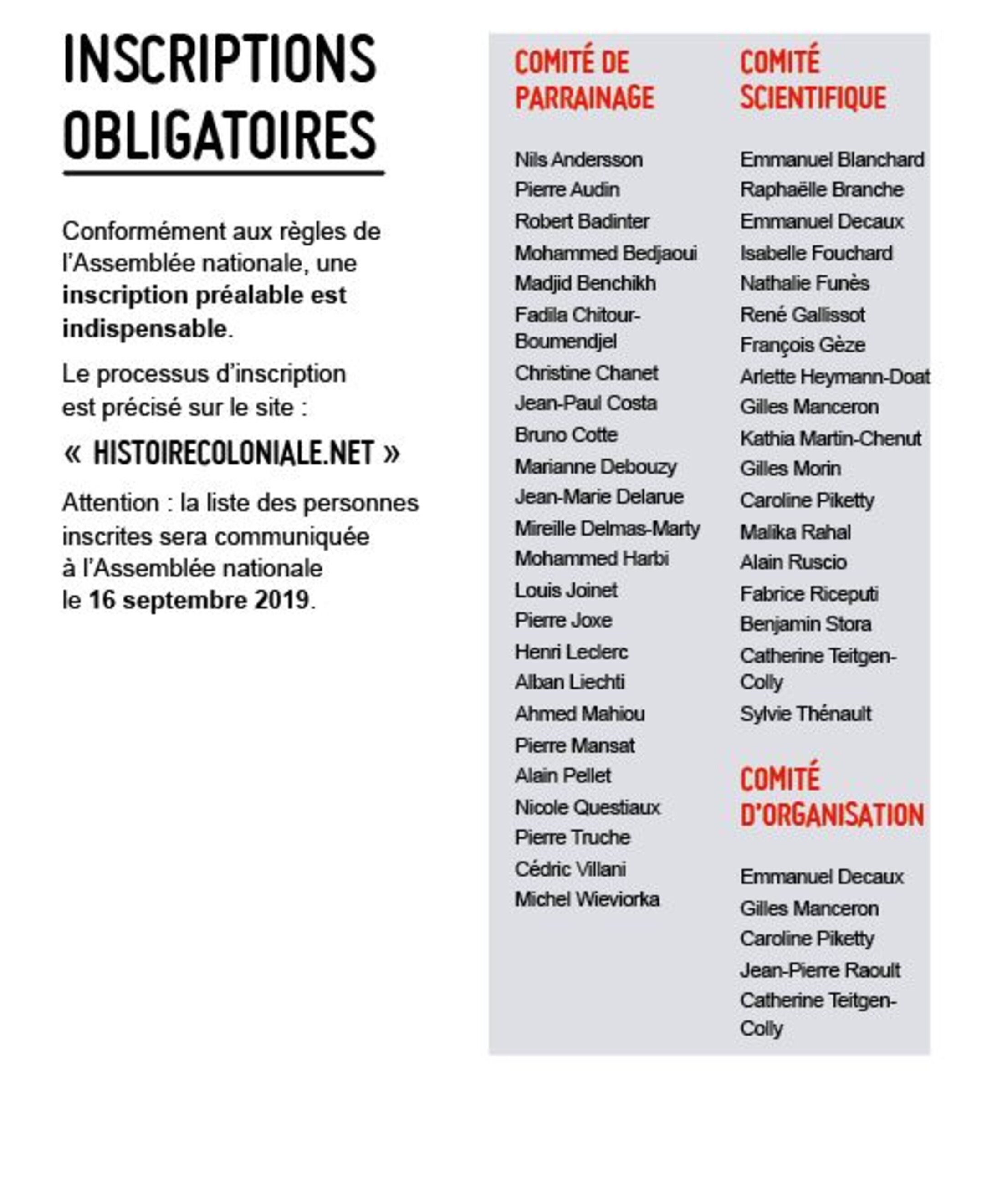 La liste définitive des personnes inscrites doit être communiquée par les organisateurs à l’Assemblée nationale avant le 16 septembre 2019. Les services de l’accueil ne permettront l’accès qu’aux personnes dont le nom y figurera.