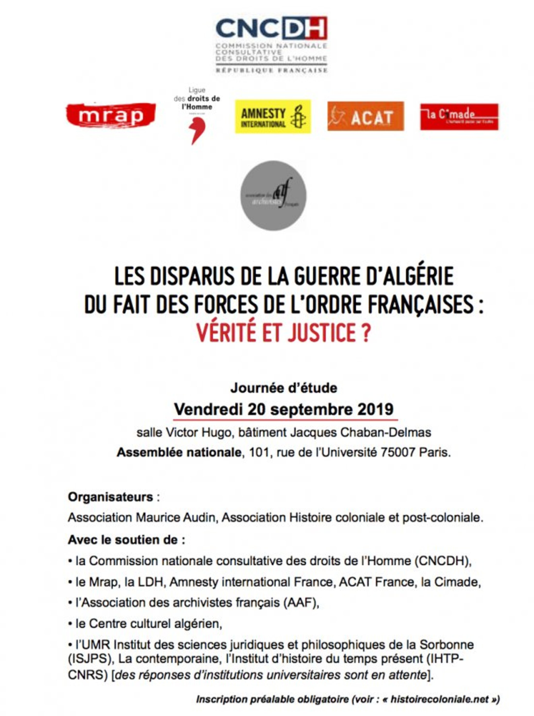 Cette journée d’étude est née d’une rencontre, celle d’historiens, de juristes et d’archivistes. L’origine en remonte à la déclaration du président de la République du 13 septembre 2018, lors de sa visite à Josette Audin, veuve du mathématicien et militant communiste Maurice Audin, « disparu » à l’âge de vingt-cinq ans à la suite à son arrestation à Alger, le 10 juin 1957, par des parachutistes français : « La disparition de Maurice Audin a été rendue possible par un système dont les gouvernements successifs ont permis le développement : le système appelé “arrestation-détention” à l’époque même, qui autorise les forces de l’ordre à arrêter, détenir et interroger “tout suspect dans l’objectif d’une lutte plus efficace contre l’adversaire” » et affirmant que “ce système s’est institué sur un fondement légal : les pouvoirs spéciaux”. »