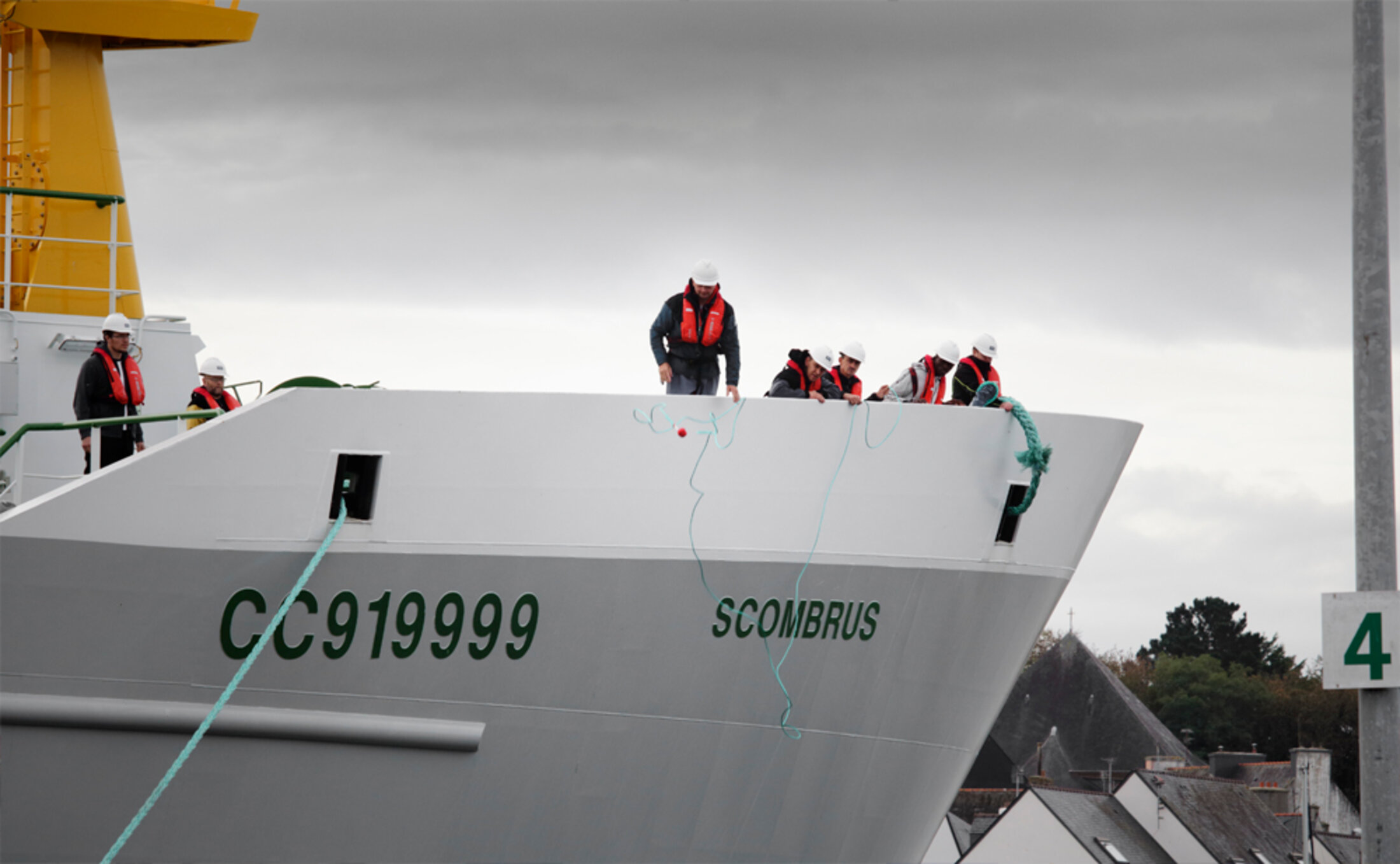 En venant se faire baptiser à Concarneau, Scombrus commet un affront envers bon nombre d'artisans Français, à commencer par les Concarnois : le chalutier de 81,37 mètres, construit en Norvège, est venu s'amarrer face aux chantiers Piriou.
