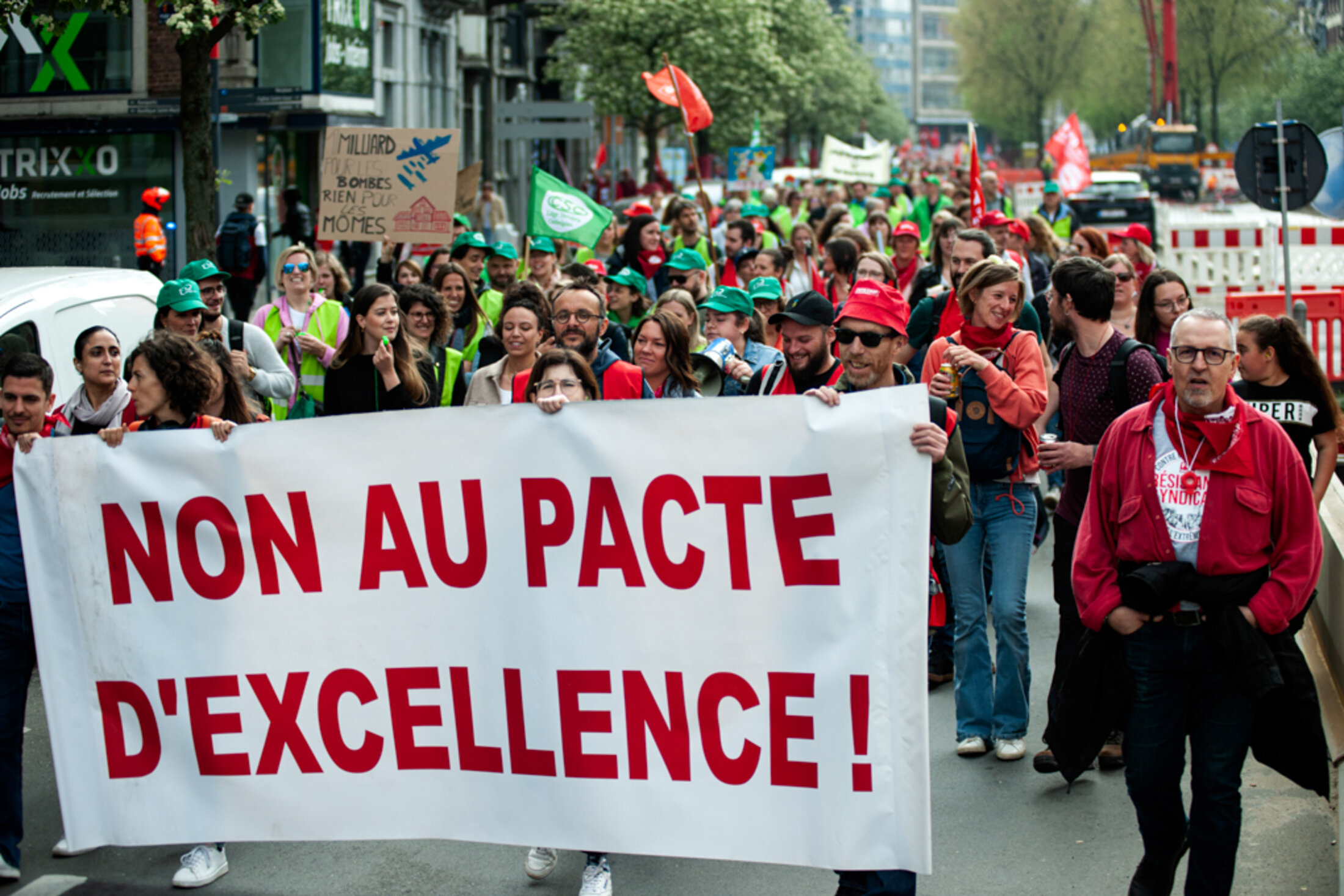 Le gouvernement Wallonie Bruxelles tremble devant les 15.000 enseignants en lutte a Liège face à ce mécontentement, le gouvernement fédéral Wallonie-Bruxelles à décider d'abandonner certaines mesures pour tenter de rétablir la paix sociale. Le front commun syndical appuyés par les enseignants disent NON NOUS NE PLIERONS PAS !