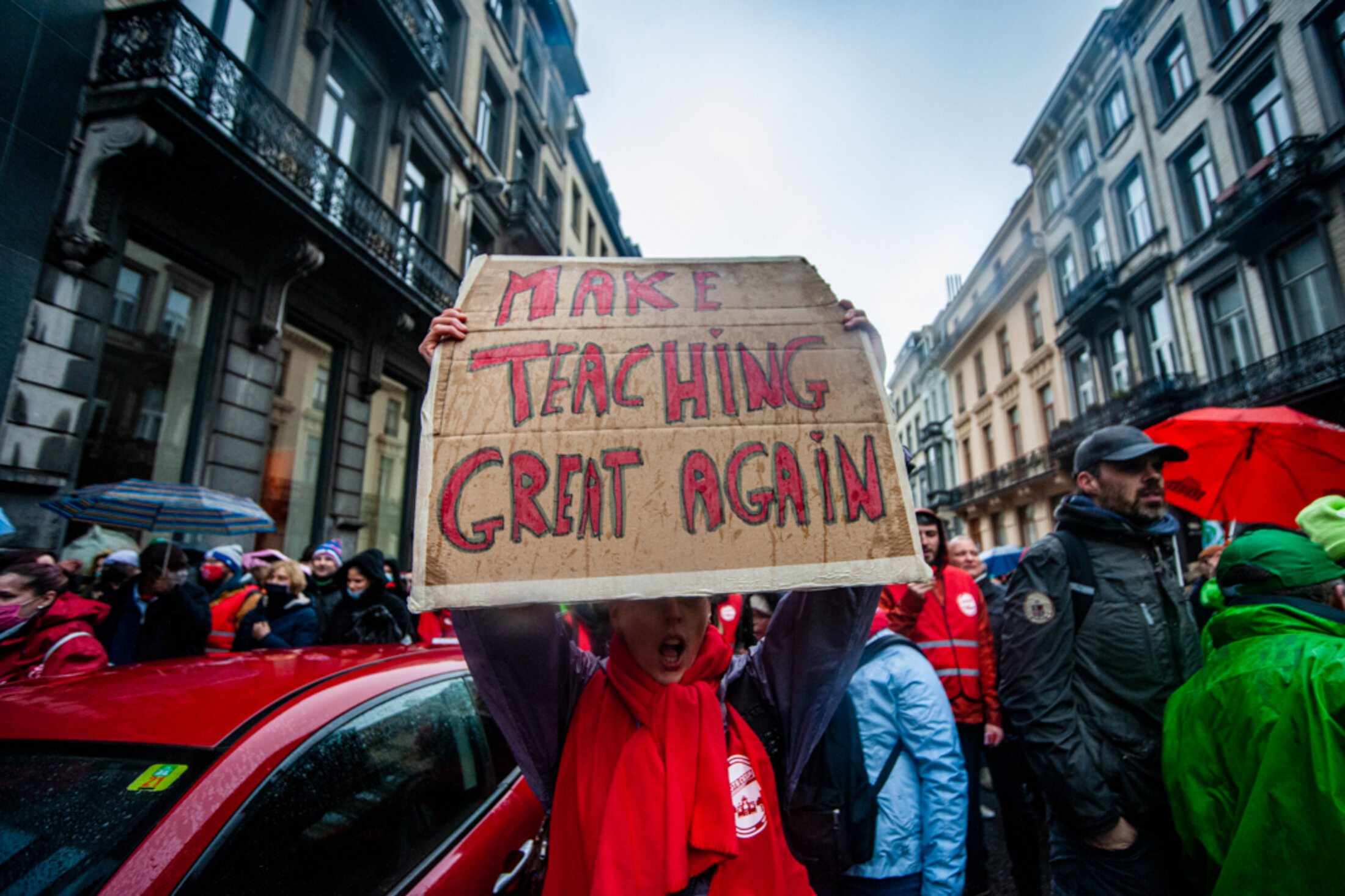 Le gouvernants ont déjà demandé énormément d’efforts aux enseignants. Il ne s’agit toutefois pas d’un appel formel à la grève, mais les enseignants participent à l’action seront couverts par leur organisation syndicale.