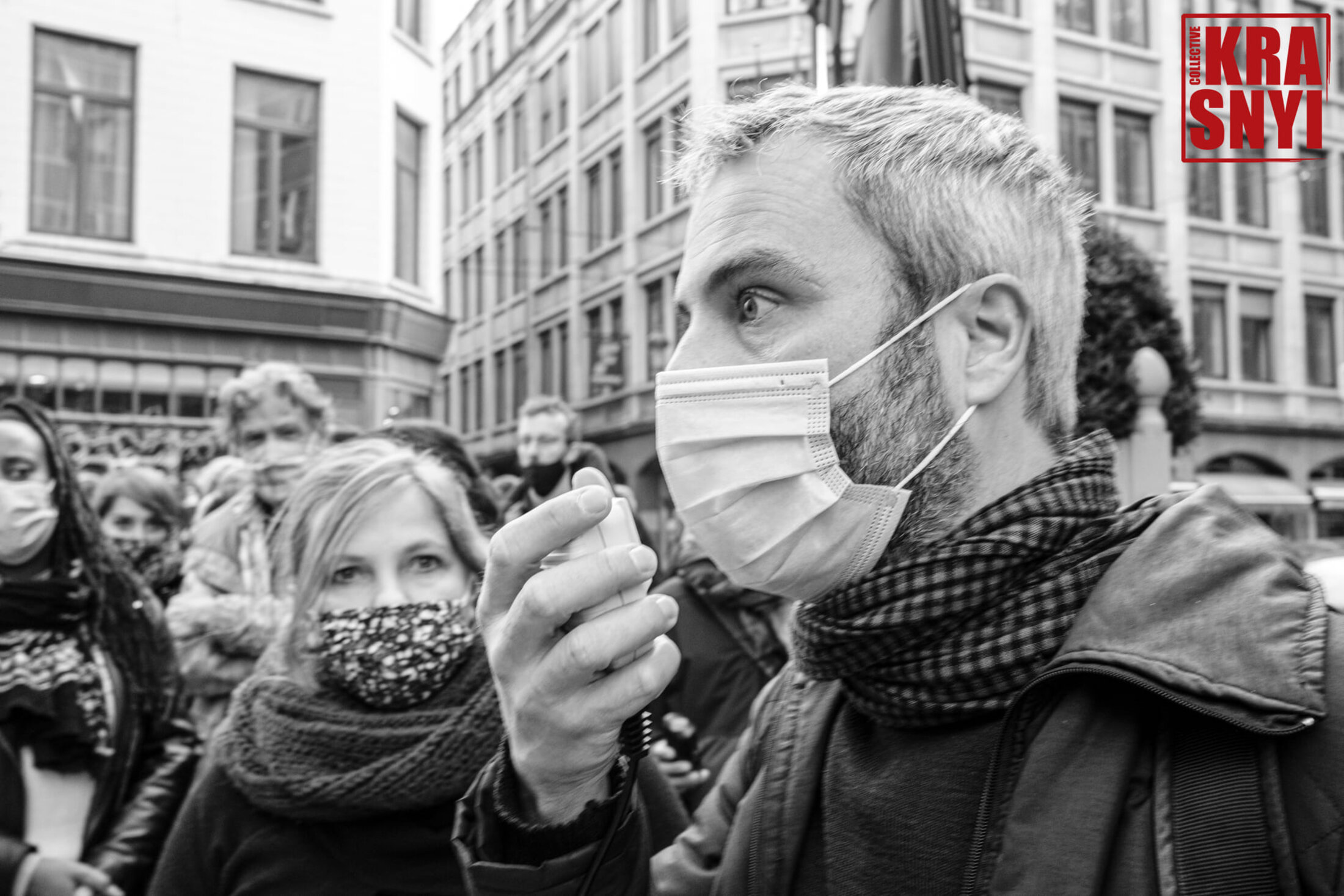 Bruxelles / 19-10-20 / Une petite centaine de personnes ont participé à un rassemblement devant l'hôtel de ville de Bruxelles suite aux refus d'une interpellation communale visant à dénoncer l'attitude la majorité au pouvoir à la ville quant au violences policières lors de la Grande manifestation de la Santé.