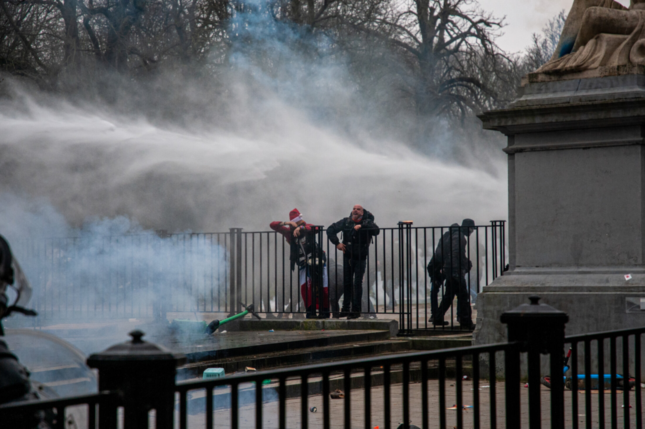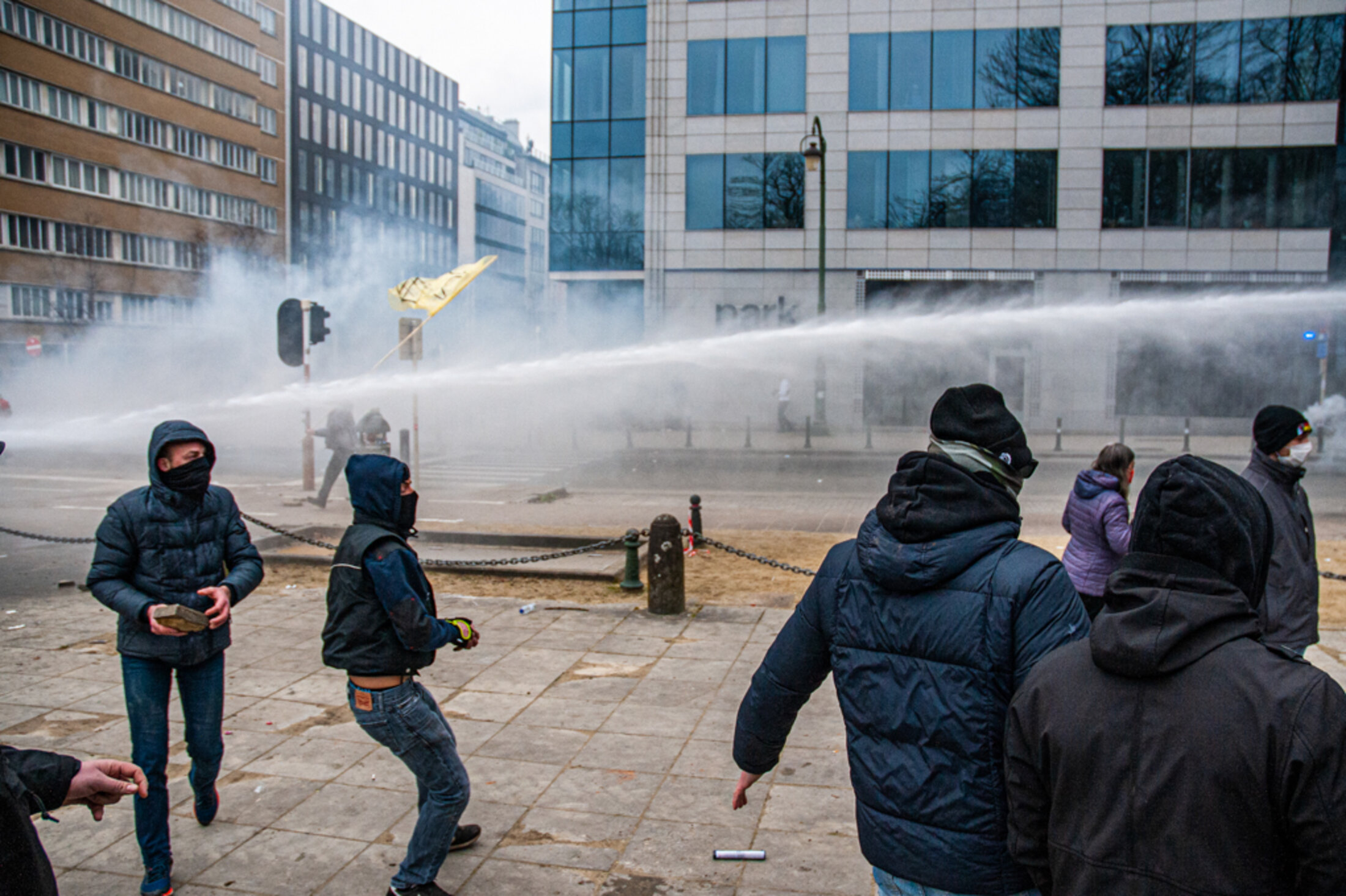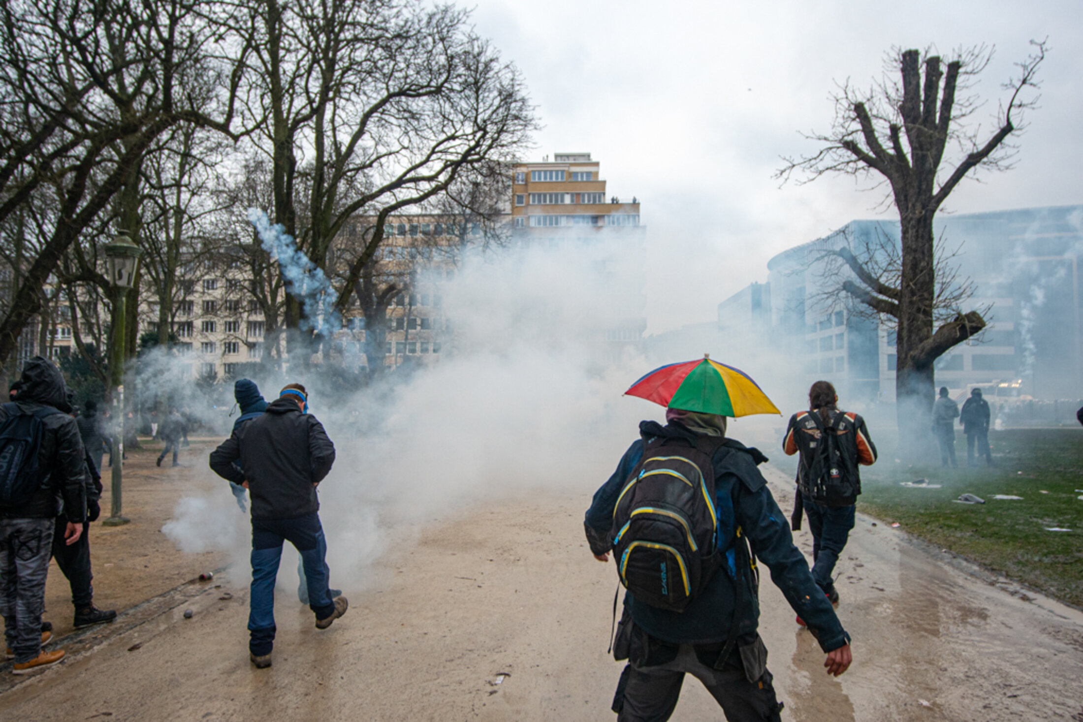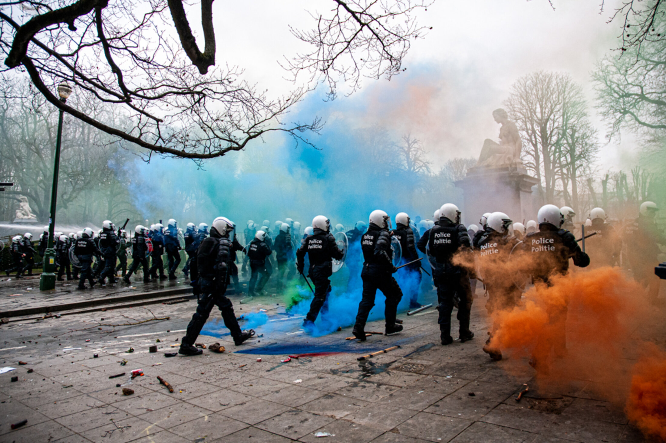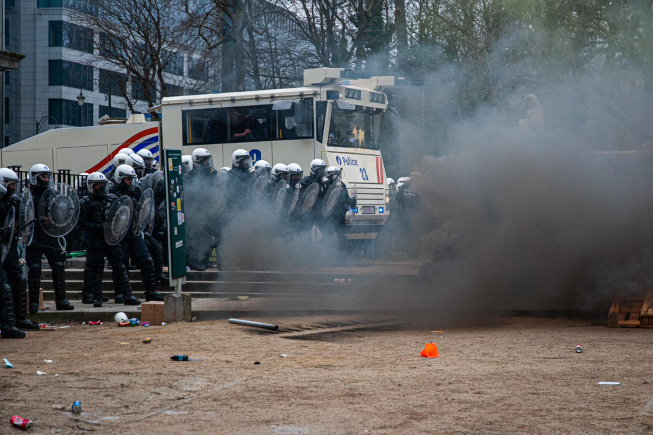 Belges, Allemands, français, néerlandais, américains, polonais ou roumains flottent dans la foule qui déambule dans les rues de Bruxelles, a observé Belga sur place. De nombreux manifestants portent des panneaux avec des inscriptions critiquant le pouvoir en place, la vaccination, le Covid Safe Ticket ou appelant à protéger les enfants des affrontements entre militants et forces de l'ordre, selon des images diffusées sur les réseaux sociaux par plusieurs journalistes présents sur place. Les autorités ont fait usage de gaz lacrymogènes et de canons à eau pour disperser la foule, rassemblée dans le quartier où se trouvent les institutions européennes. Des véhicules de police ont par ailleurs été pris pour cible par les manifestants. le Premier ministre Alexander De Croo a annoncé vendredi que les restaurants et les bars pourraient allonger leurs horaires d'ouverture mais que les discothèques resteraient fermées.