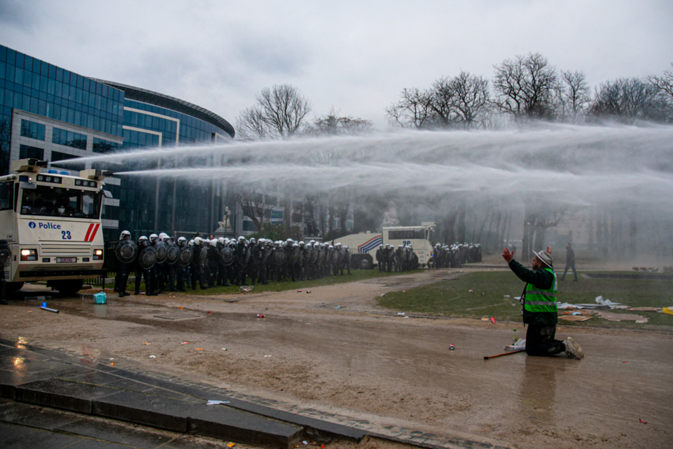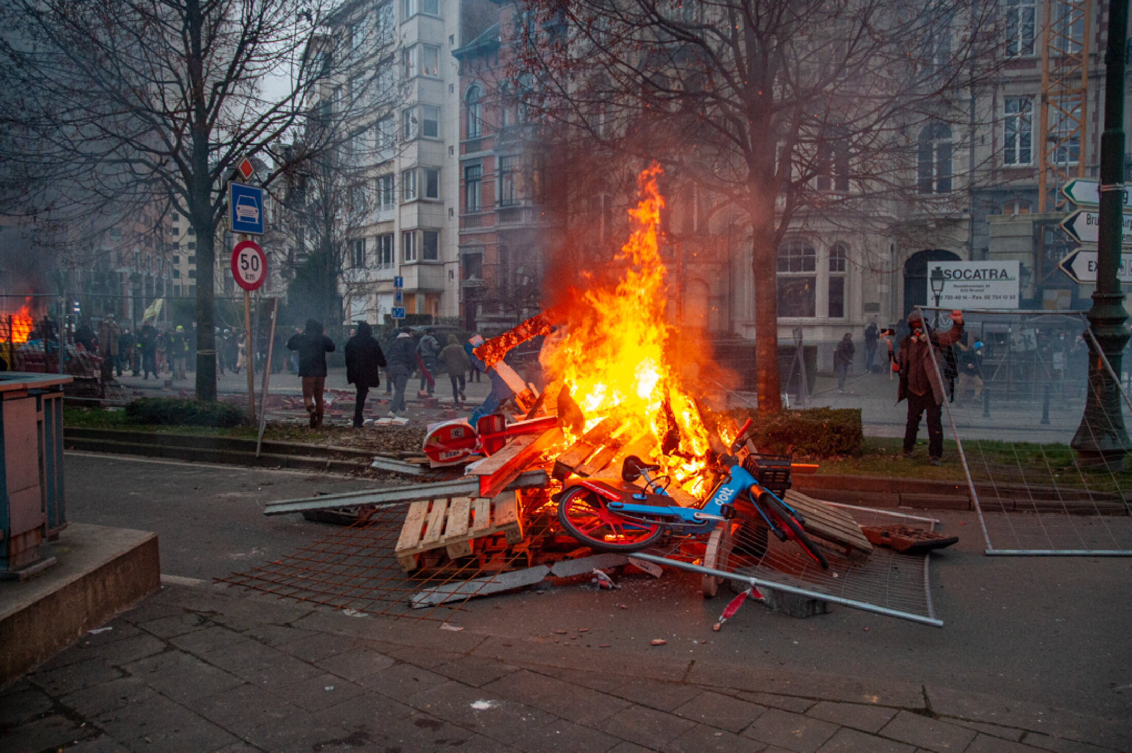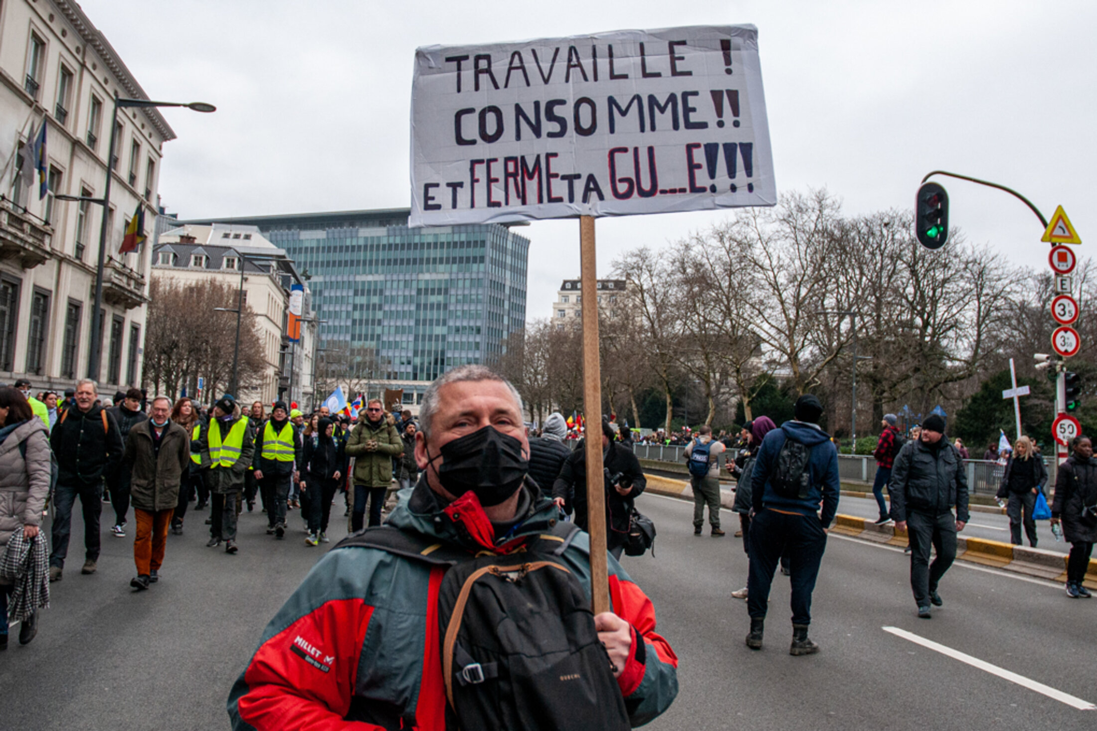 Dimanche 23 janvier 2022 Haute tension sur Bruxelles contre les mesures sanitaires 500.000 manifestants selon les organisateurs, 50.000 d'après la police on manifesté dans la capitale de l'Europe (Bruxelles) lors de la manifestation Pour la liberté pour la démocratie pour les droits de l'homme, 3 policiers et 12 manifestants blessés et 60 arrestations.