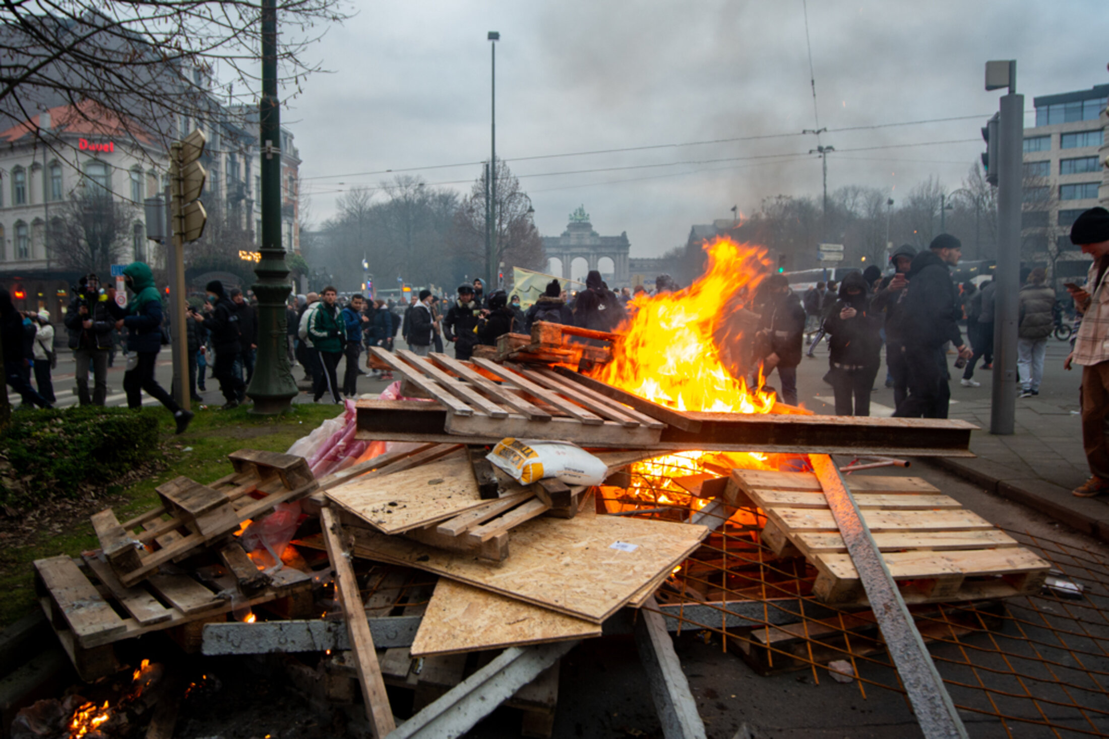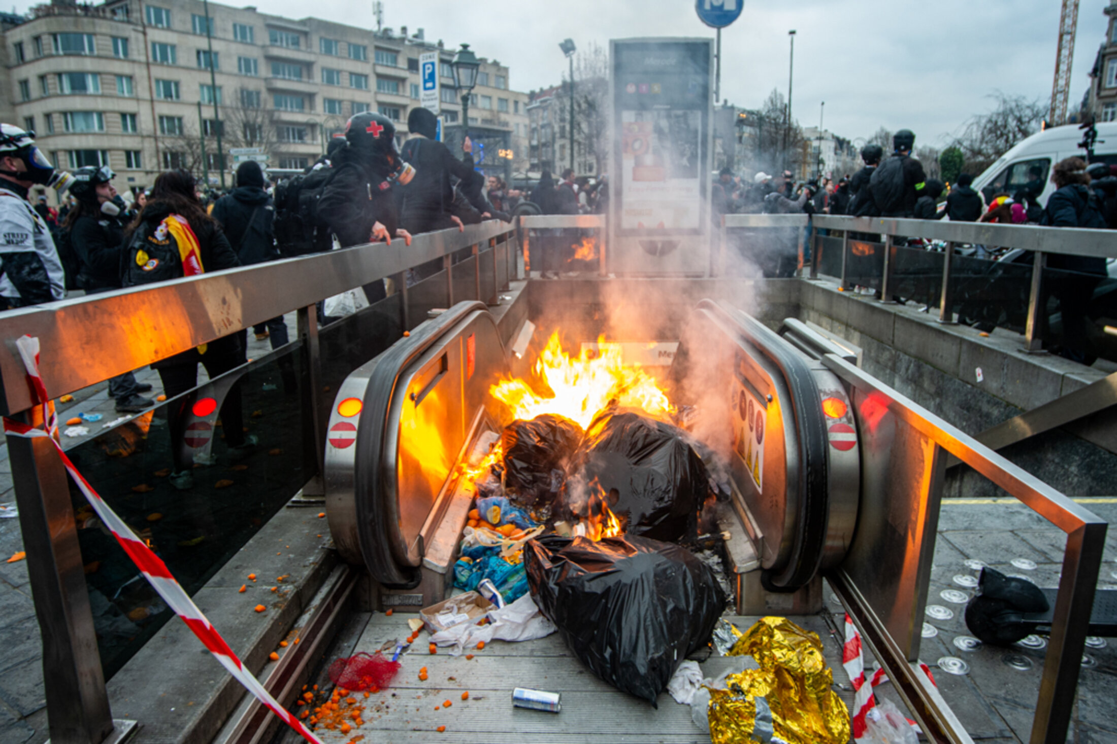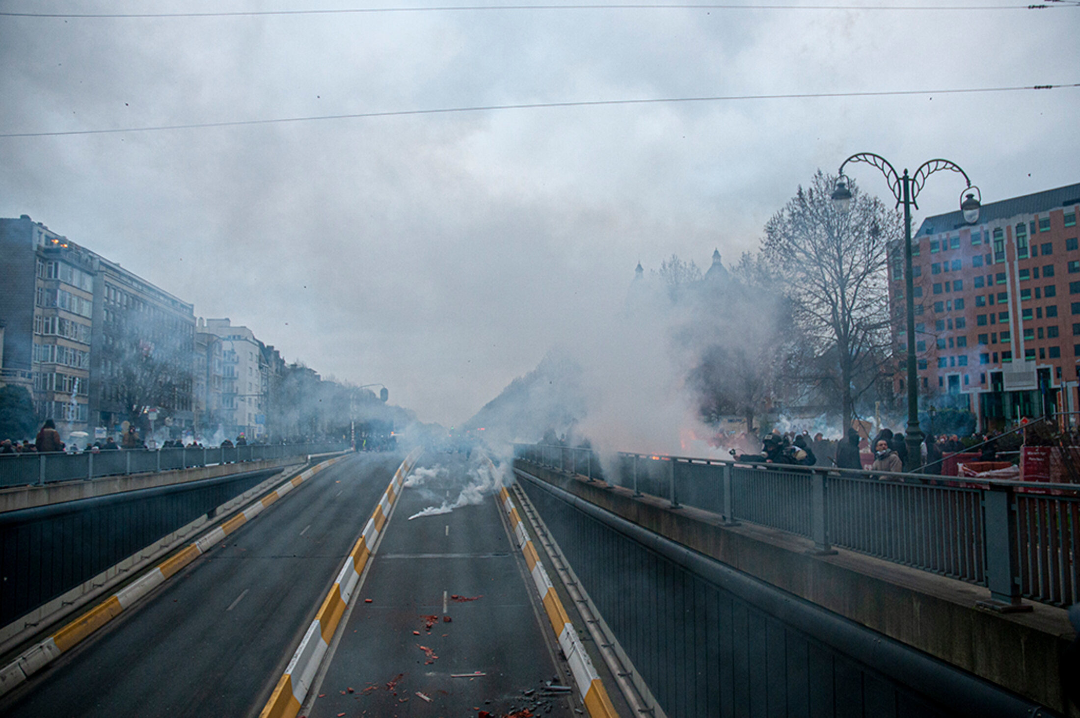 Dimanche 23 janvier 2022 Haute tension sur Bruxelles contre les mesures sanitaires 500.000 manifestants selon les organisateurs, 50.000 d'après la police on manifesté dans la capitale de l'Europe (Bruxelles) lors de la manifestation Pour la liberté pour la démocratie pour les droits de l'homme, 3 policiers et 12 manifestants blessés et 60 arrestations.