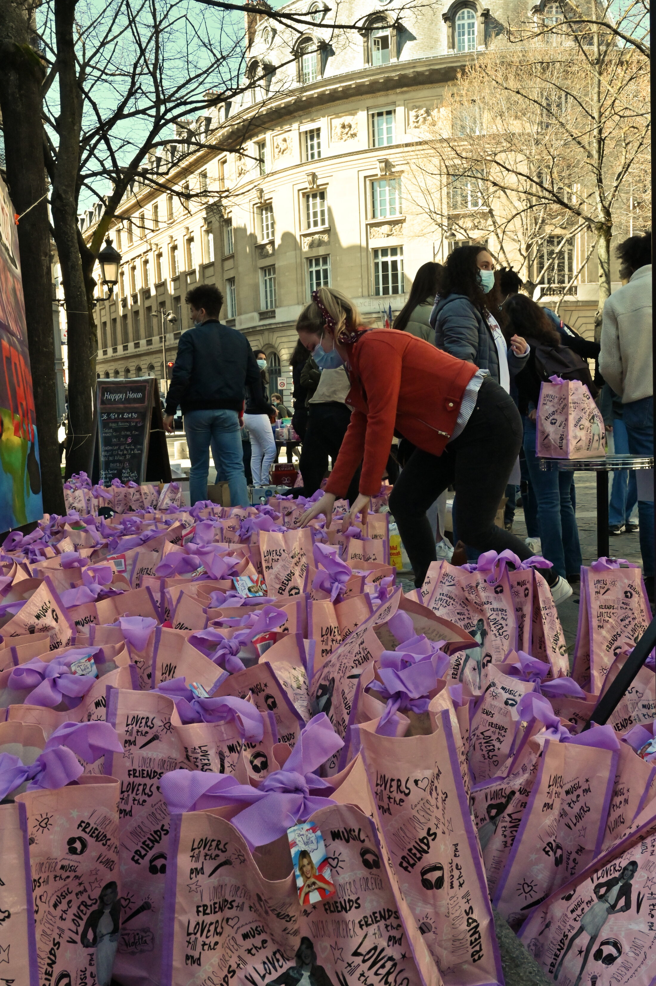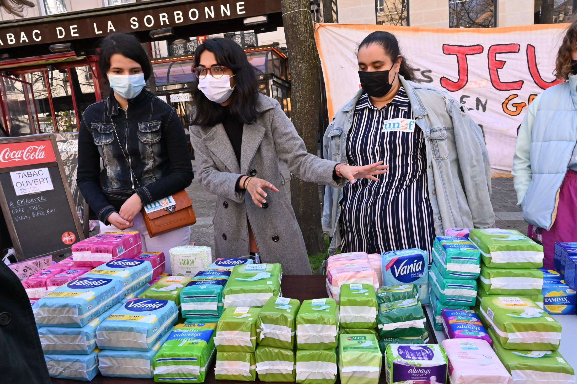 Distribution de protections hygiéniques et de repas solidaires par l'UNEF le 24 mars 2021 à Paris