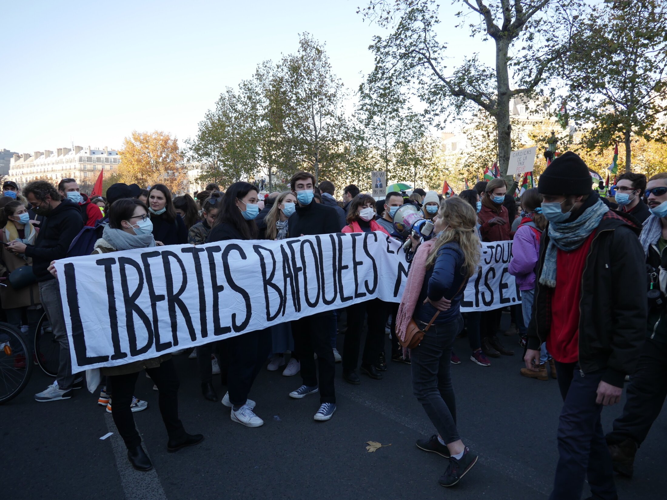 De nombreuses personnes se sont rassemblées ce samedi 28 novembre à Paris et dans toute la France contre la proposition de loi «sécurité globale». Des associations, des syndicats de journalistes ou encore des avocats étaient présents. Le cortège a débuté à 14 heures, reliant la place de la République à la place de la Bastille.