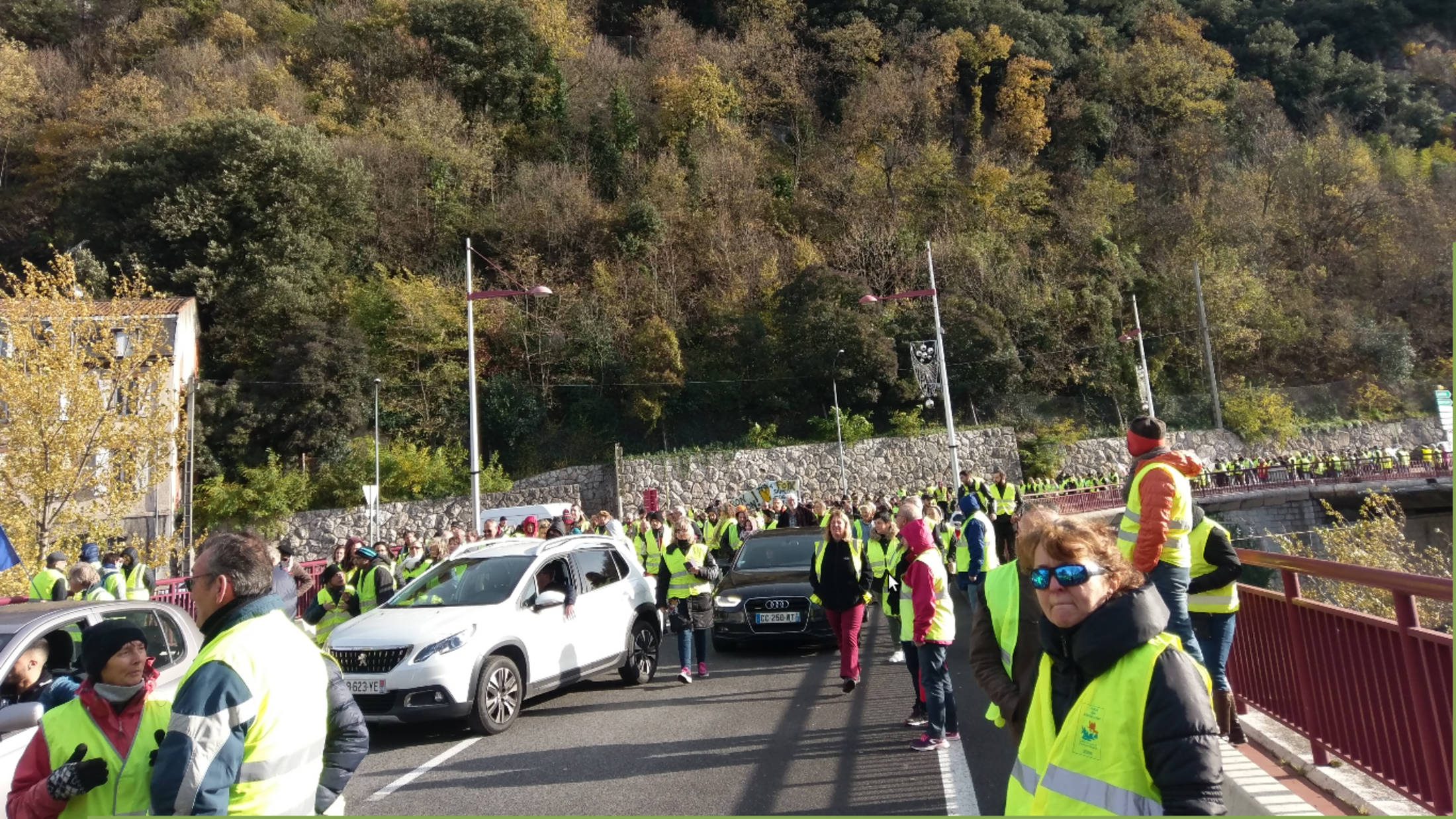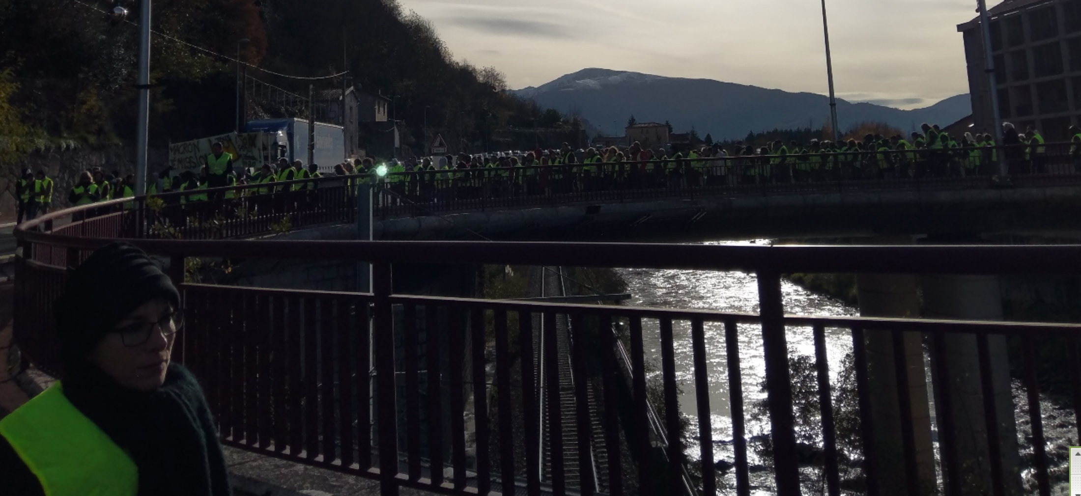 Les "Gilets jaunes" entrent dans la ville de Foix.
