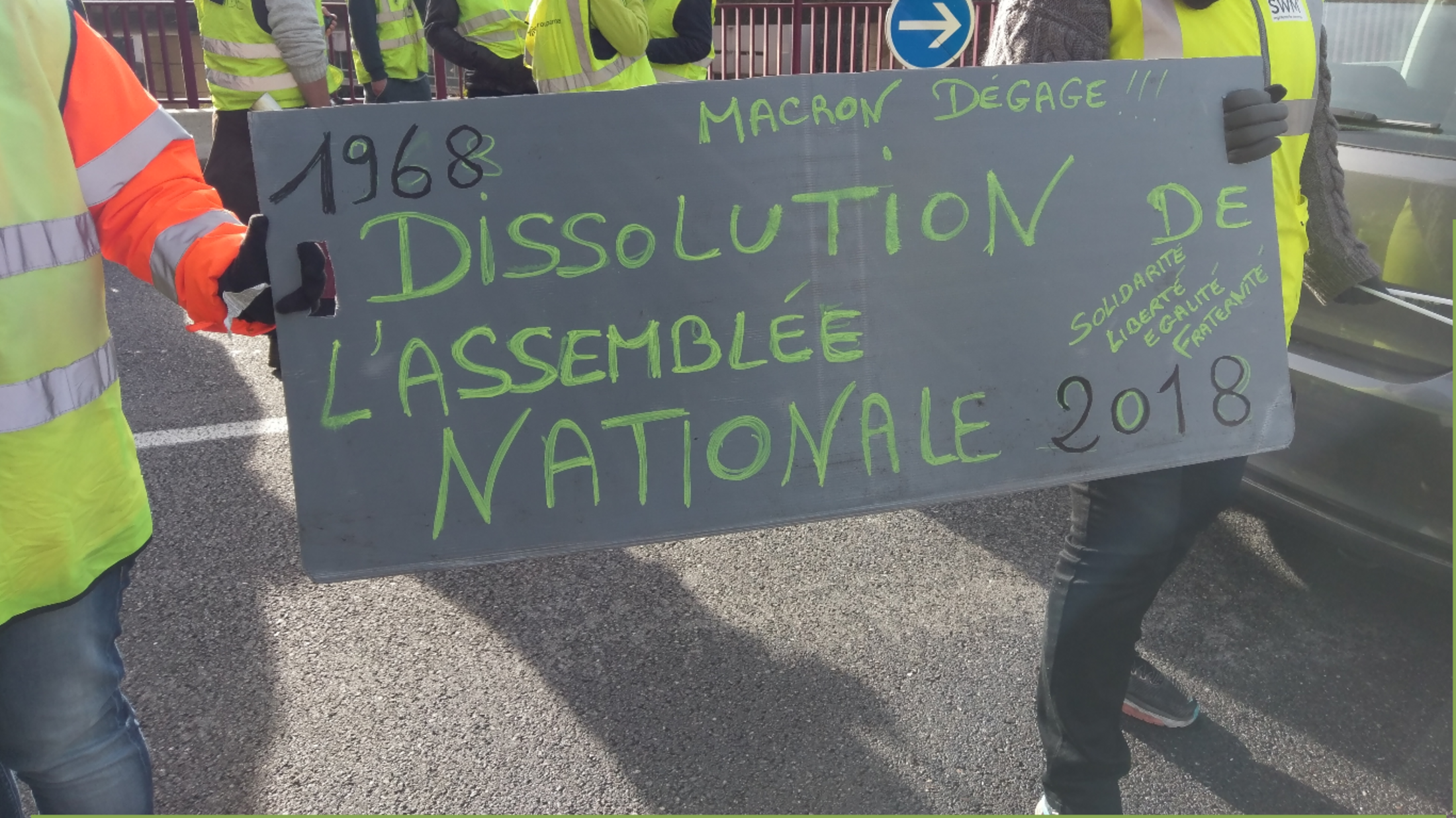 "Dissolution de l'assemblée nationale". "Solidarité, Liberté, Égalité, Fraternité".