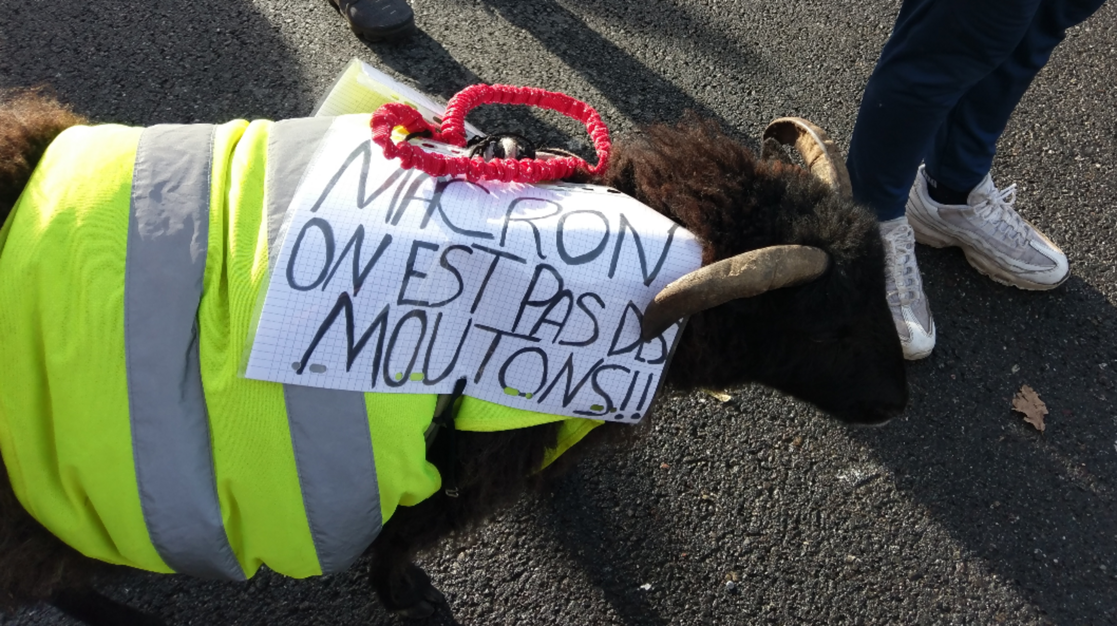 Bientôt la mascotte des "Gilets jaunes" en Ariège ? "Macron on est pas des moutons !"