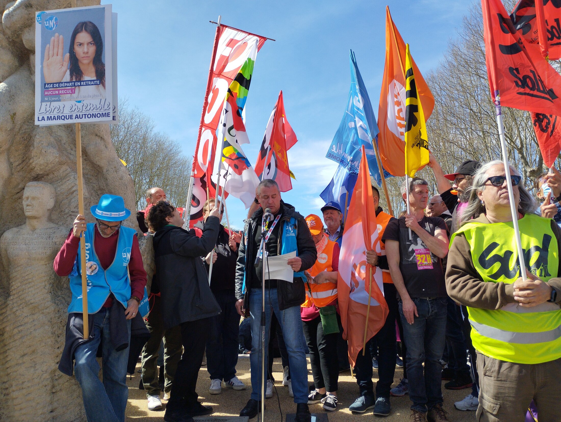 Prises de paroles des représentants de l'Intersyndicale.