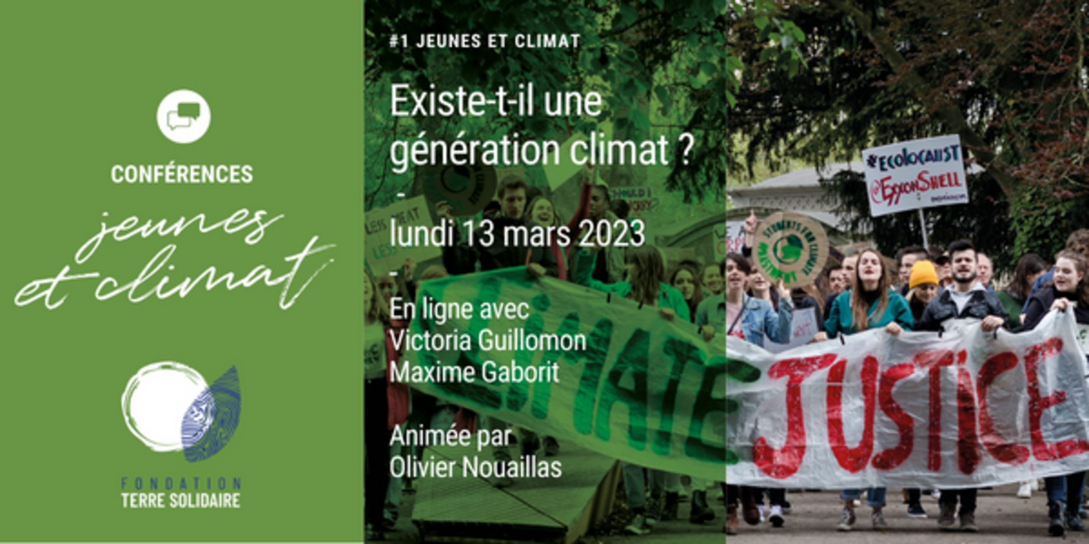 Après le succès de son dernier cycle de conférences "Penser autrement la place de l'économie", la Fondation Terre Solidaire désire mettre en avant et questionner l'engagement des jeunes pour le climat.