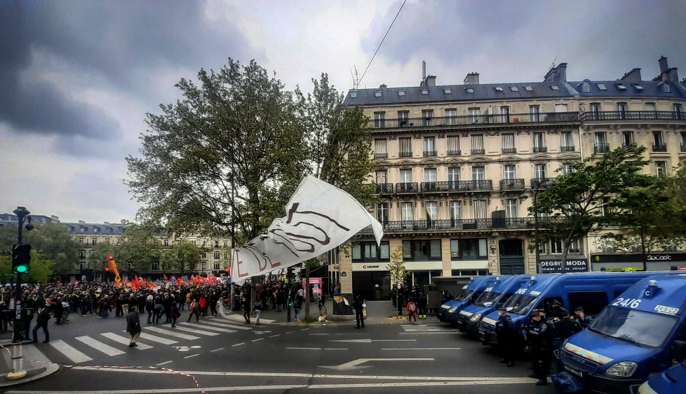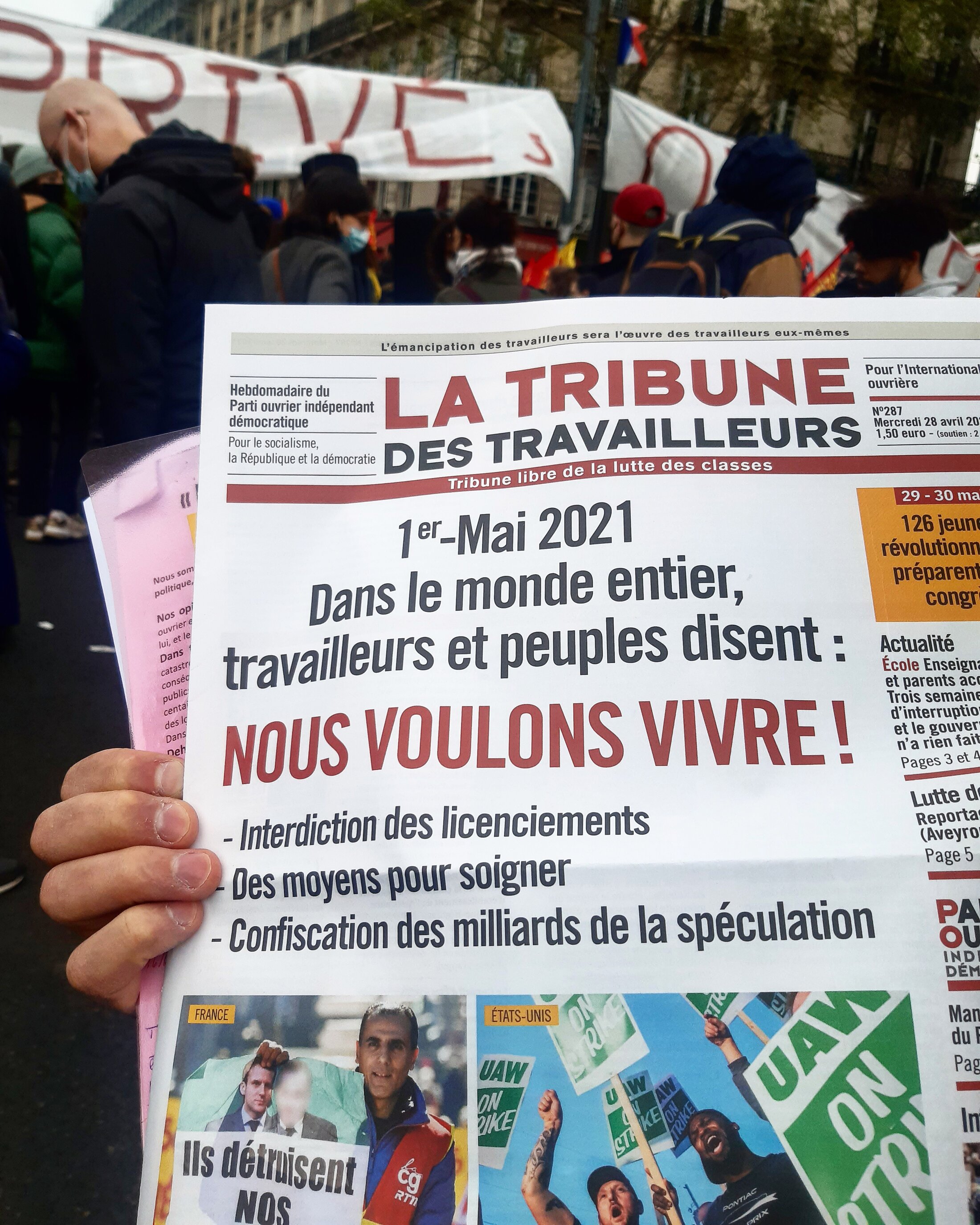 Ce samedi, le 1 mai 2021, de nombreuses manifestations ont eu lieu en France à l'occasion de la fête du travail. Suite à l'appel de différents syndicats et associations d'organiser à cette date une journée de mobilisation interprofessionnelle massive, "la convergence de lutte" était totale: CGT, FO, FSU, Solidaires, GJ, communistes et écologistes, féministes, pacifistes et anarchistes, ainsi que les étudiants et lycéens. Les mots d'ordre sonnés revendiquait : l'emploi, les meilleures conditions de travail et les salaires, la fin de destructions des emplois publiques et de l'état d'urgence, le retrait de la reforme de l'assurance chômage et de la loi sécurité globale, la meilleure protection sociale et les libertés, le sauvetage de la planète et la paix dans le monde entier ..