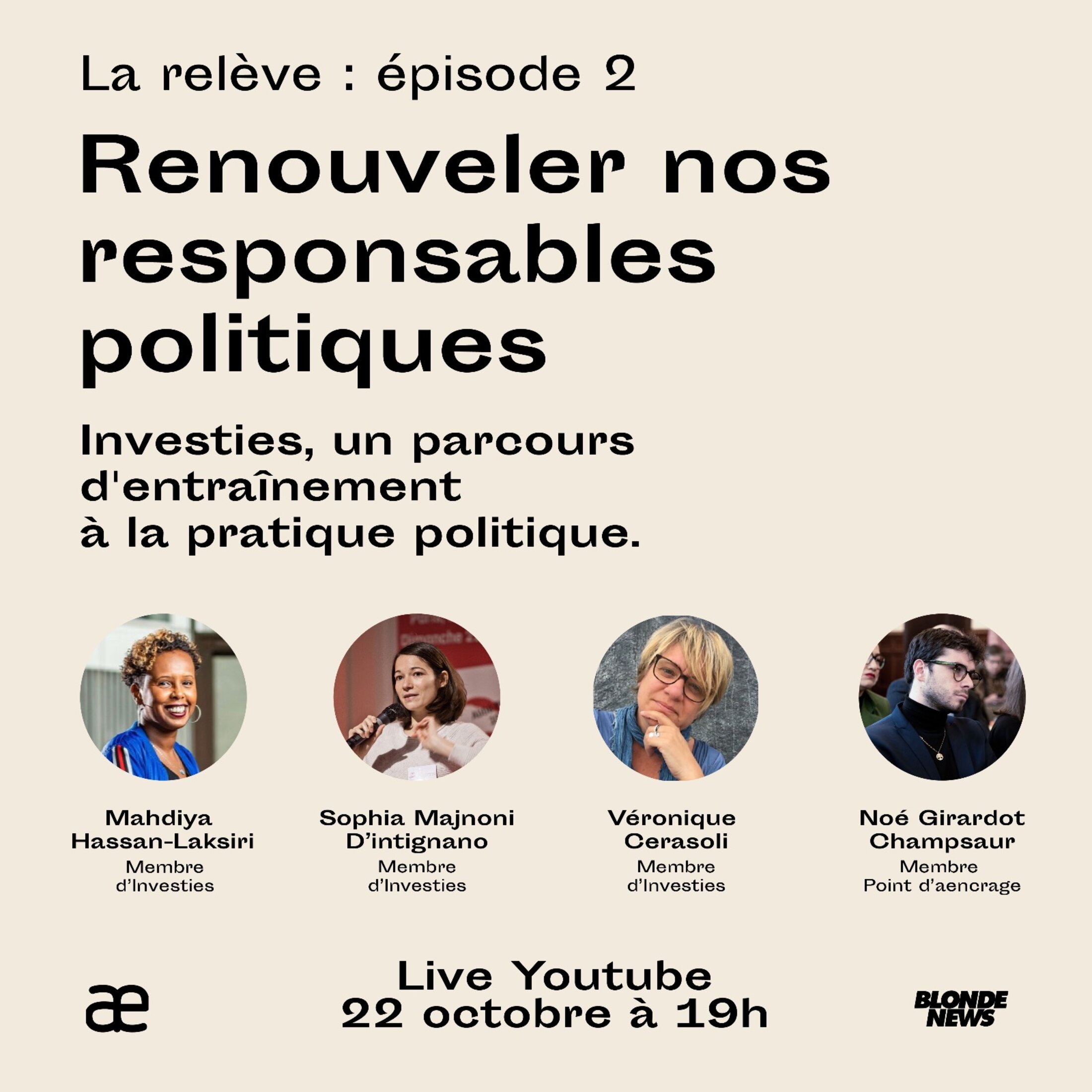 La relève, épisode 2 : Investies, parcours d'entraînement à la pratique politique. Avec Mahdiya Hassan-Laksiri, Sophia Majnoni, Veronique Cerasoli : 3 participantes à Investies viennent nous parler de cette expérience d’entraînement à la pratique politique, de représentation démocratique, de nouvelles méthodes, et de nouvelles figures politiques.