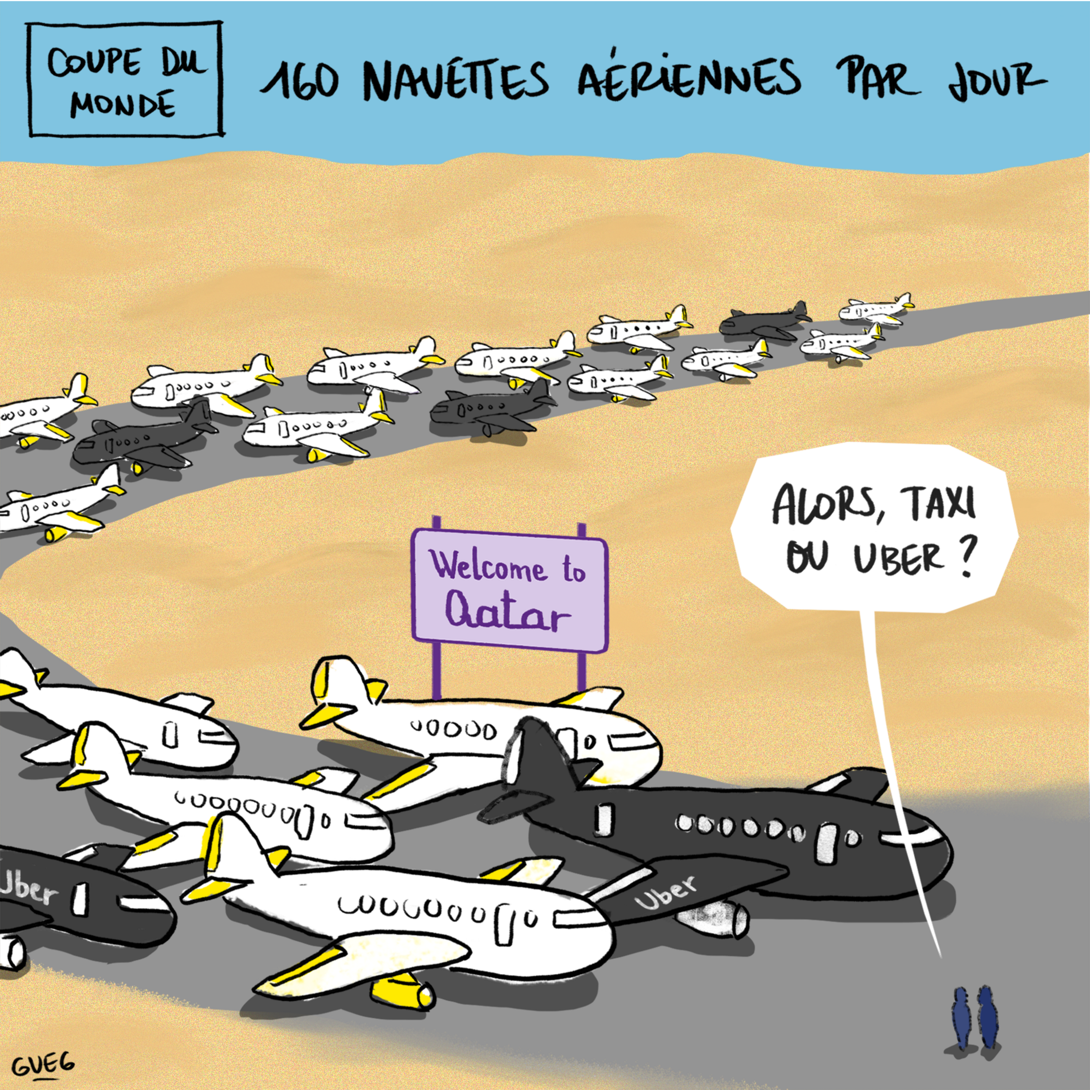 Faute de pouvoir loger les 1,2 millions de personnes attendues au Qatar, l’organisation de la Coupe du Monde 2022 a annoncé la mise en place de 160 vols « navette » quotidiens pour assurer le transport des supporters depuis les pays voisins. Soit un vol toutes les 10 minutes. Pas mal pour une coupe du monde « neutre en carbone », comme l’ont promis la FIFA et le comité organisateur qatari.