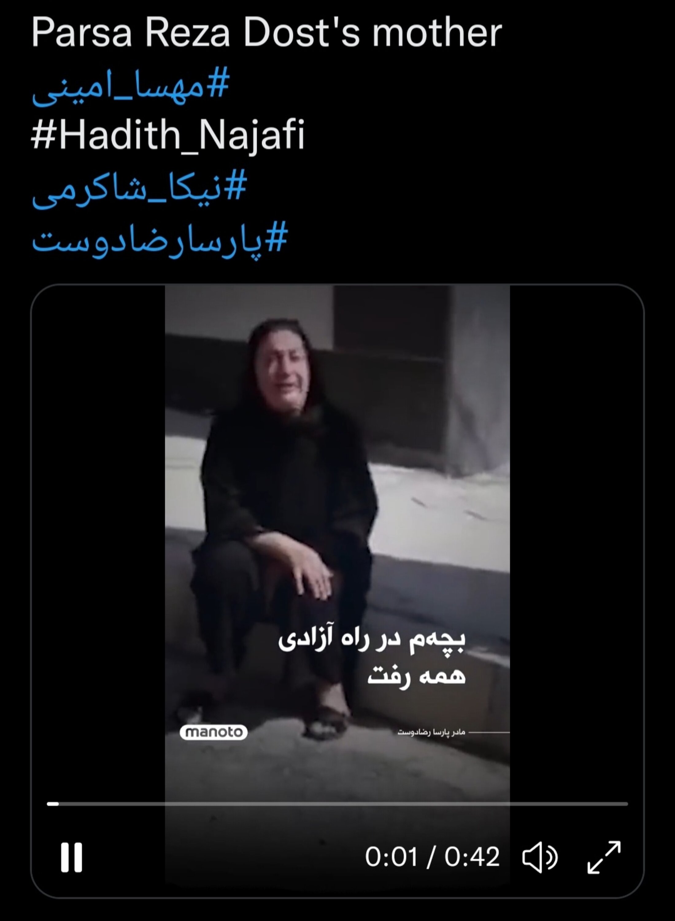 Elle aussi, elle hurle sur la vidéo. C'est la mère de Parsa Rezadoust, tué lui aussi pour avoir manifesté.