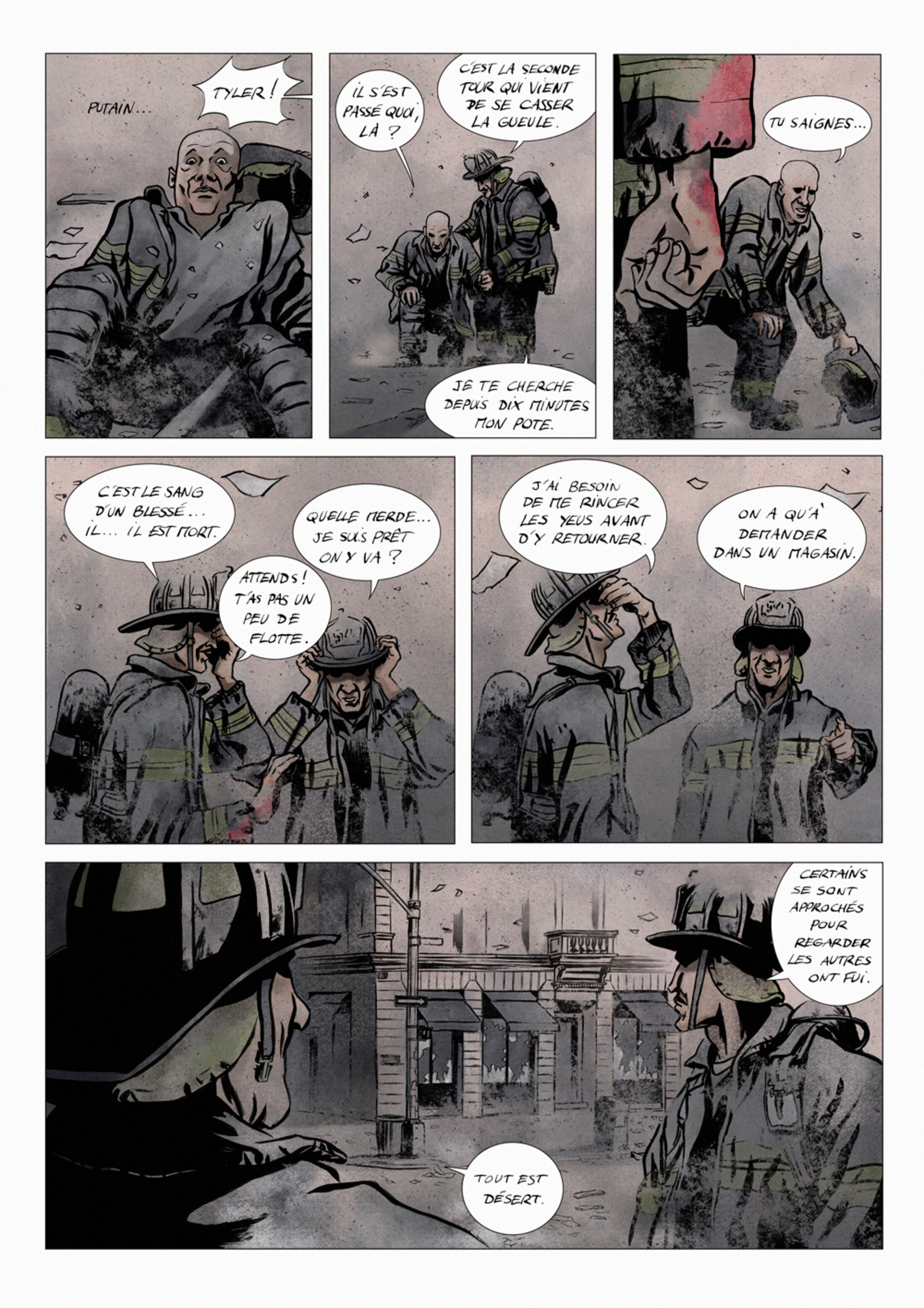 Une autre vision du 11 septembre 2001. Il y a plus de quinze ans, j'écrivais le texte de cette BD, adapté d'un fait divers, pour le laisser finalement dans un tiroir. Jusqu'en 2010/2011, où l'excellent Mogeo m'a fait l'honneur de le mettre en image. Quel autre jour qu'aujourd'hui pour le ressortir des limbes ?