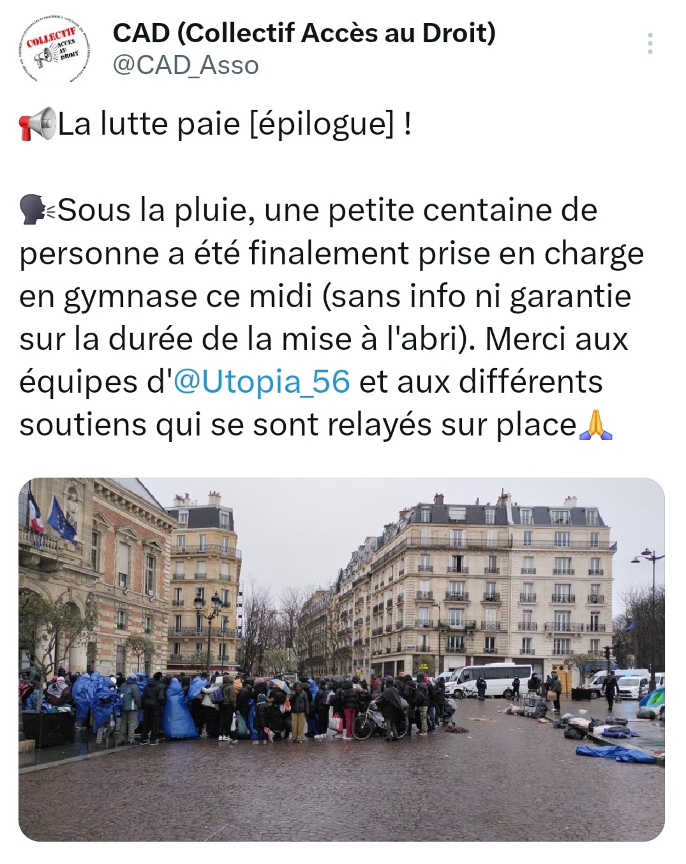 Cette issue ne doit pas faire oublier que le soir même au moins 80 familles et enfants étaient restés sans solutions et que 300 MNA occupent toujours la Gaîté Lyrique.