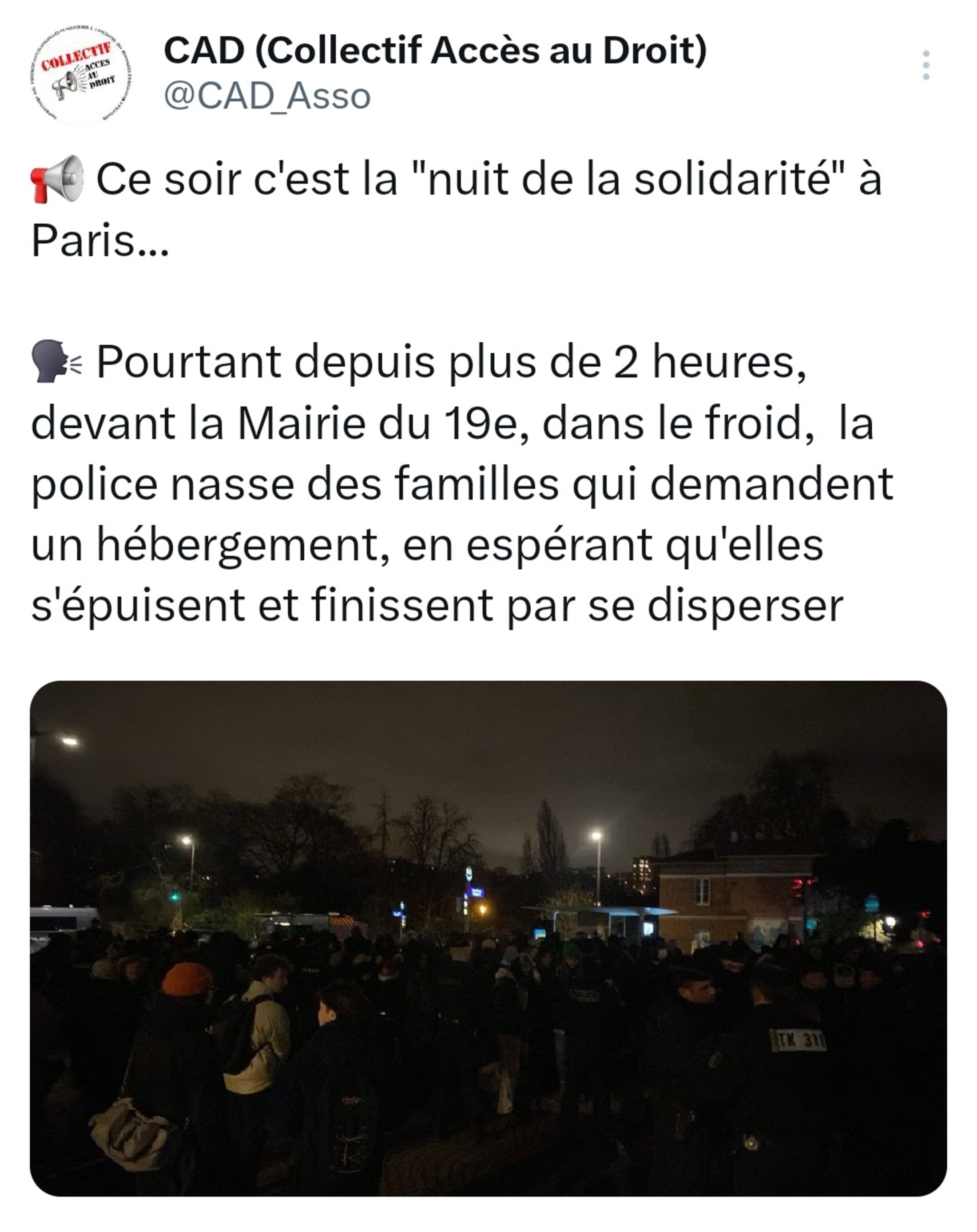 Des familles nassées dans le froid, une certaine idée de la “Nuit de la solidarité”