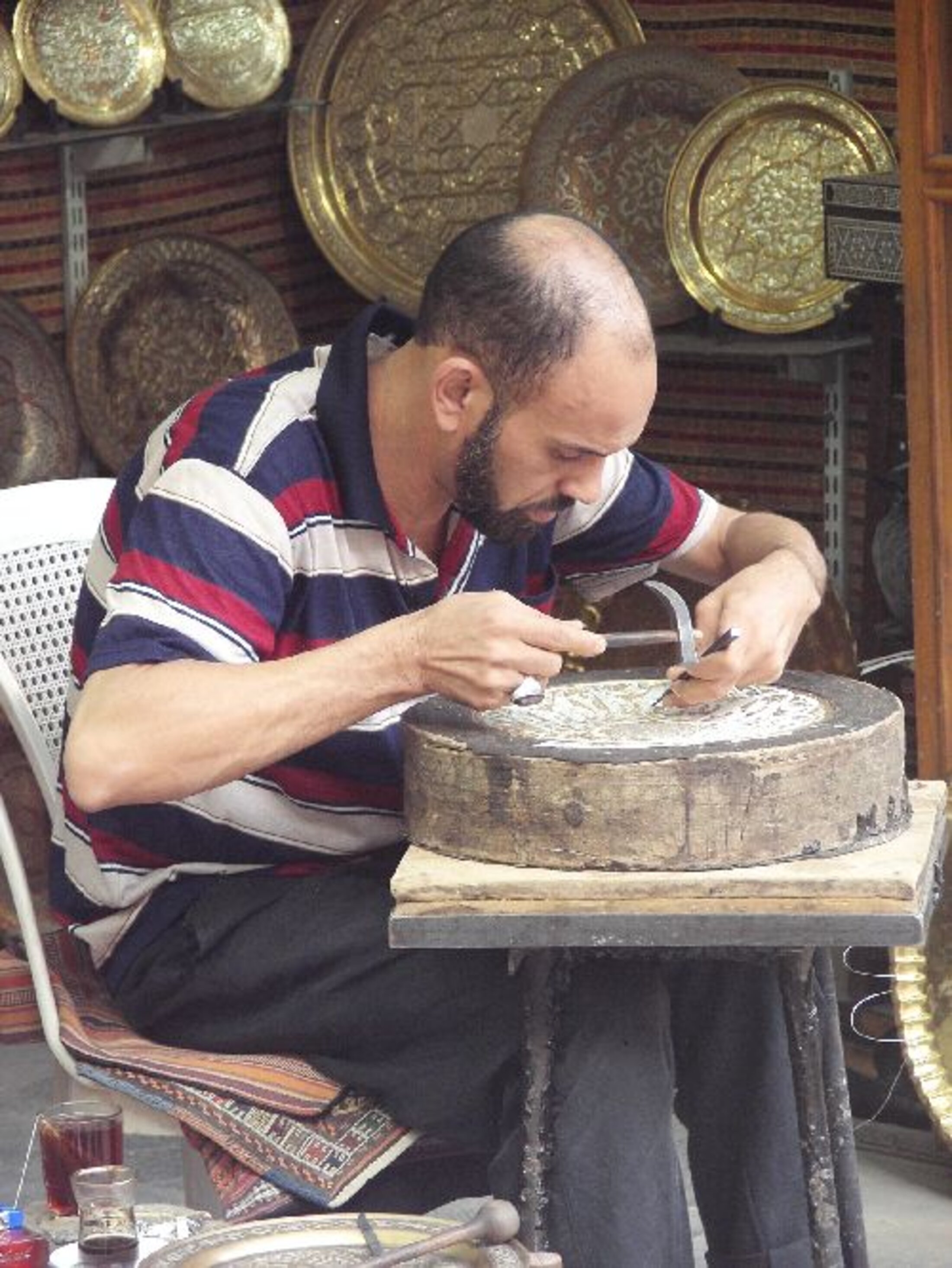 Damasquinage. : " Incruster au marteau des filets décoratifs d'or, d'argent ou de cuivre sur une surface métallique préalablement incisée".