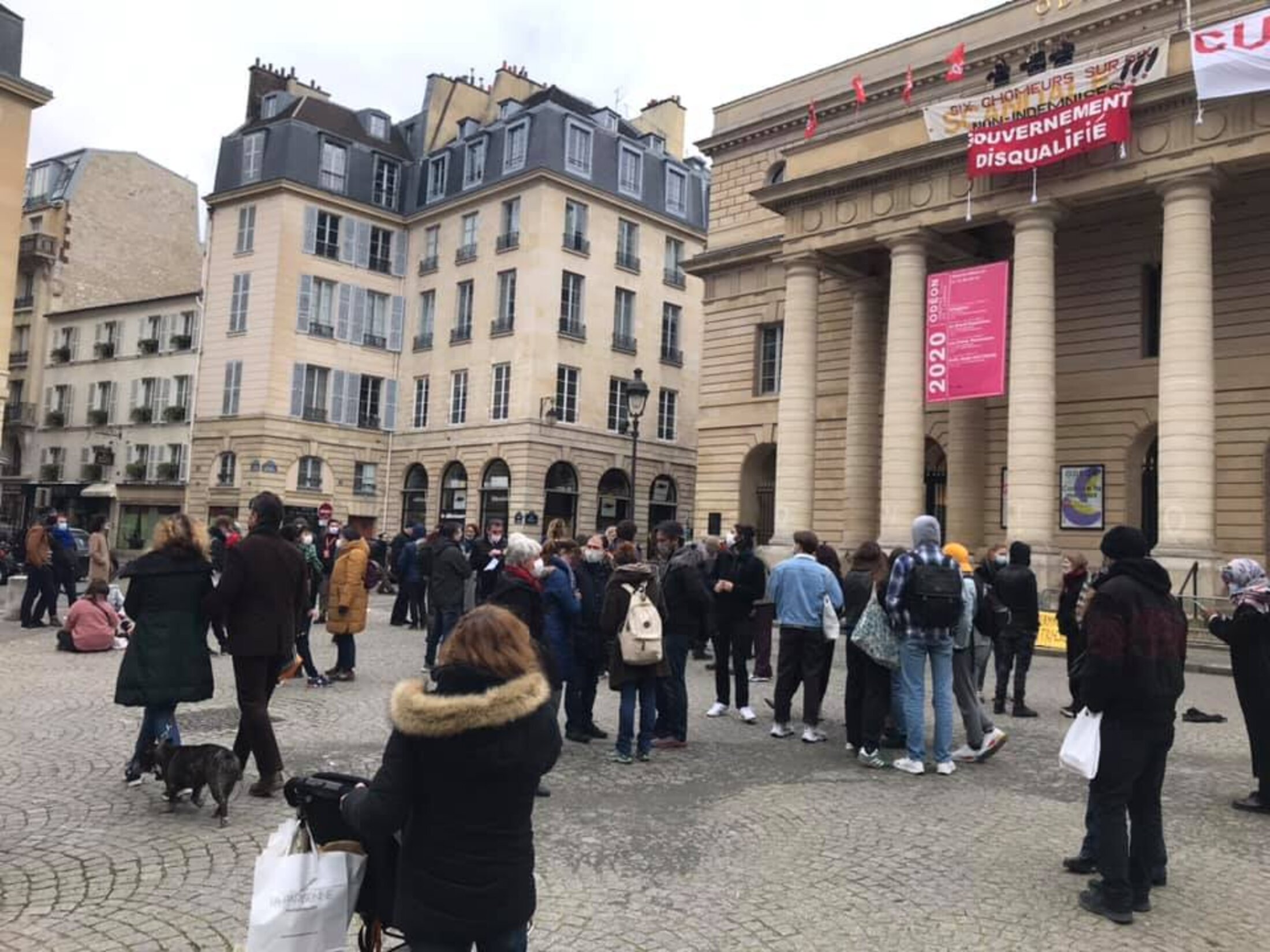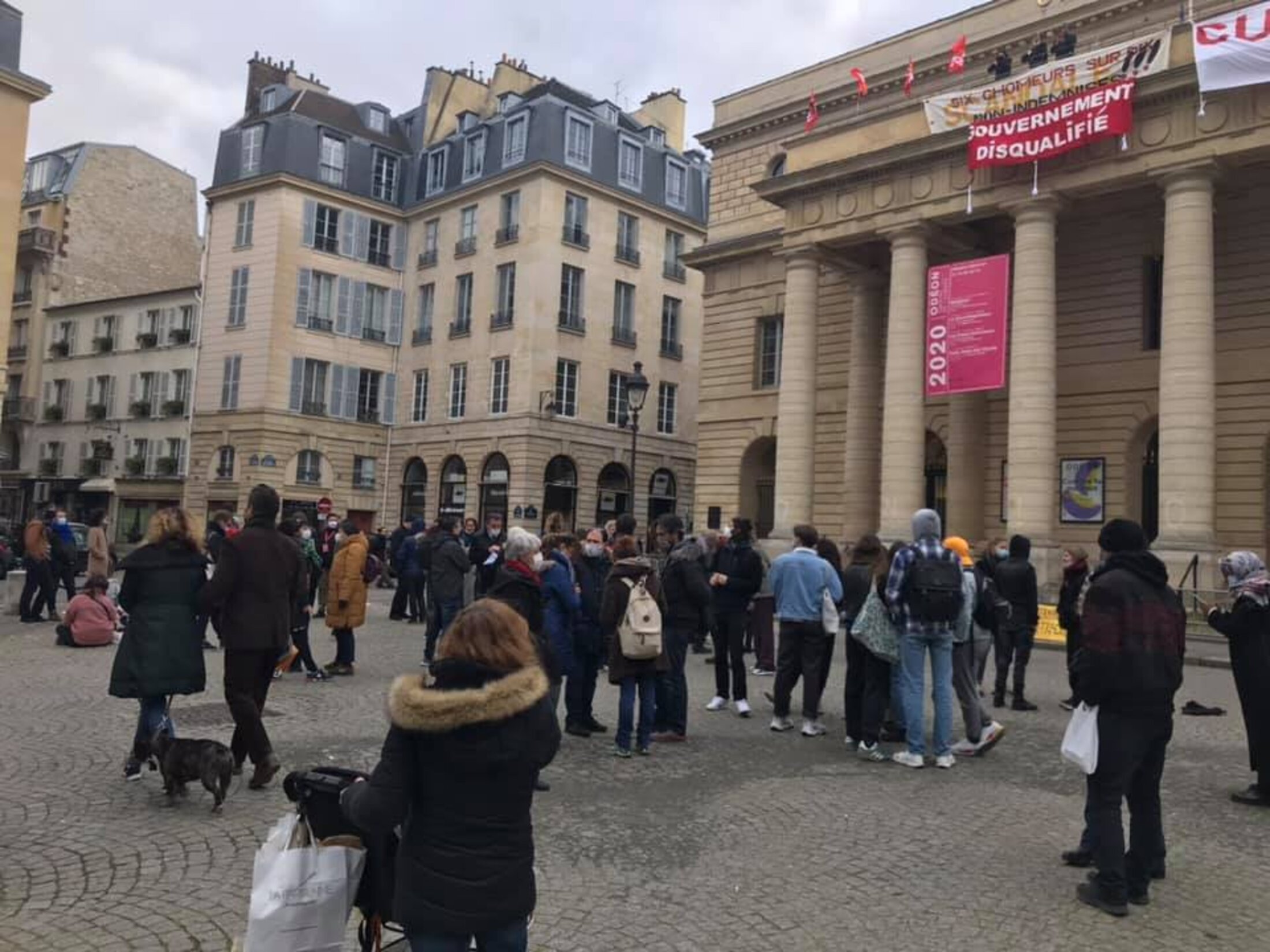 Vendredi 5 mars, devant le théâtre de l'Odéon.