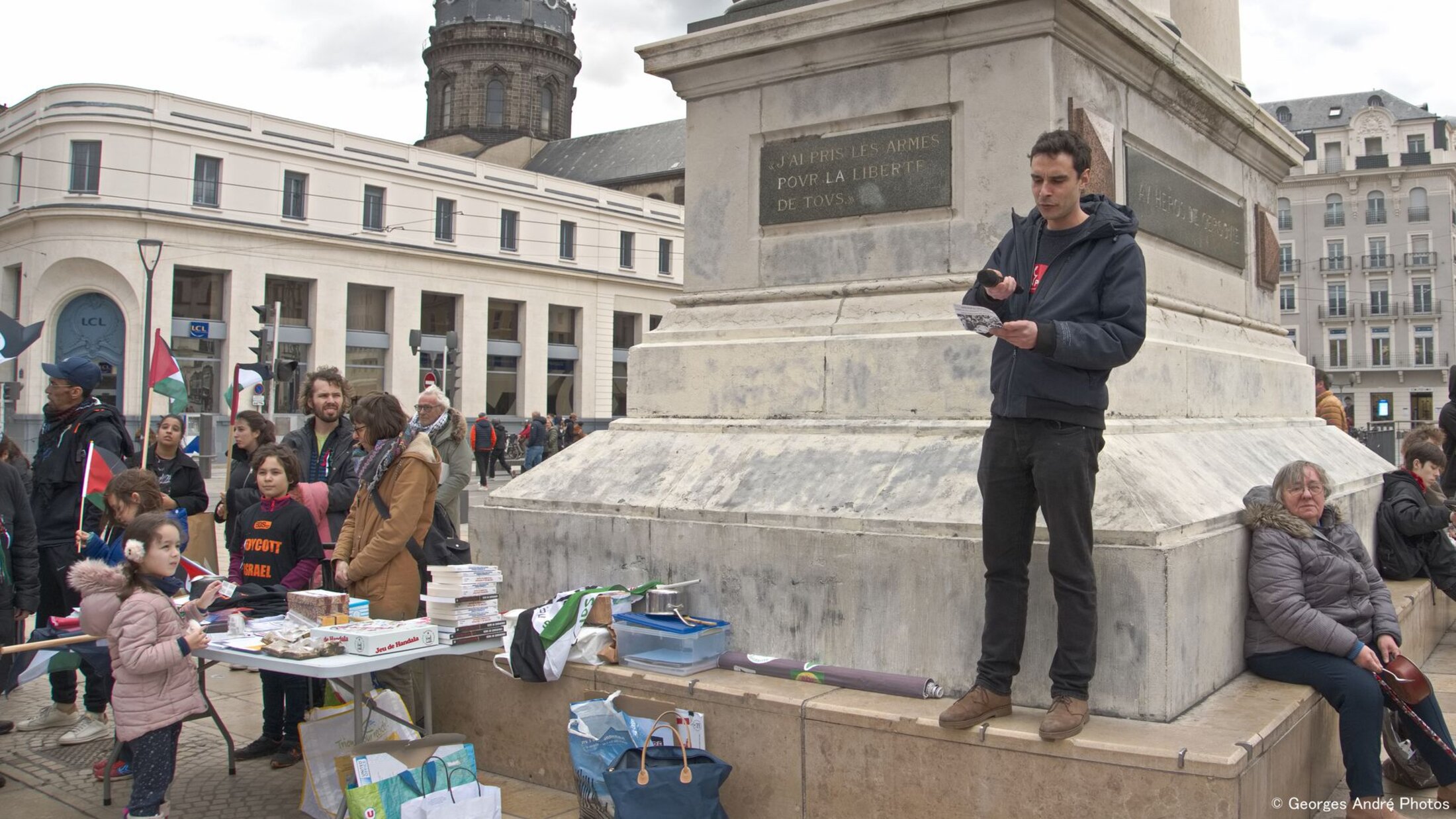 Rassemblement place de Jaude 15h pour une paix juste et durable et d'abord immédiatement STOP au massacre à l'appel des 33 organisations du collectif du département. A retrouver sur : AFPS63