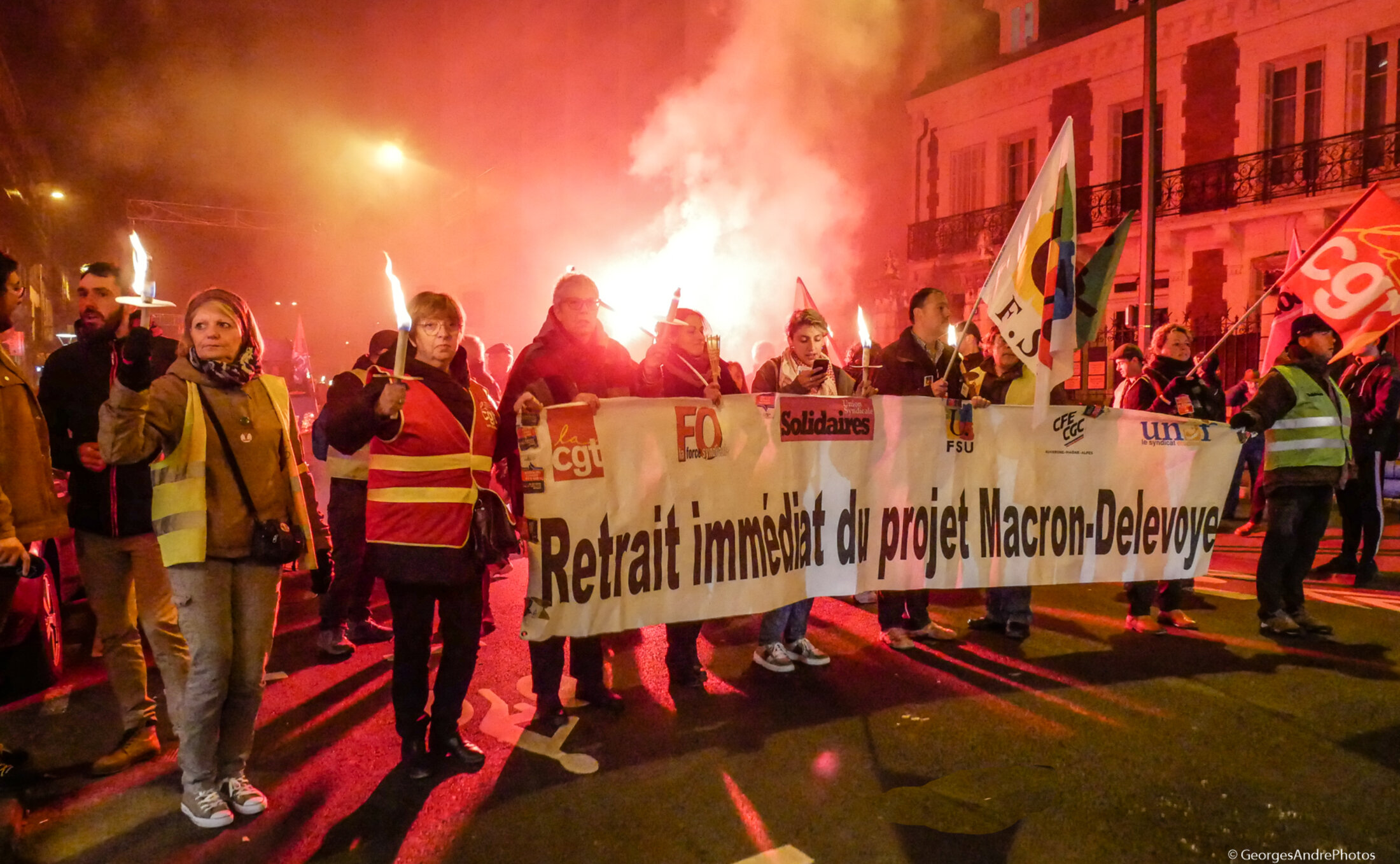 Cinquième manifestation pour le retrait de cette réforme des retraites : l'intersyndicale CGT, FO, Solidaire, FSU, CFE-CGC et UNEF a décidé d'une retraite aux flambeaux ce samedi à 16h30. Pari risqué et réussi, respiration de cette mobilisation massive et déterminée.