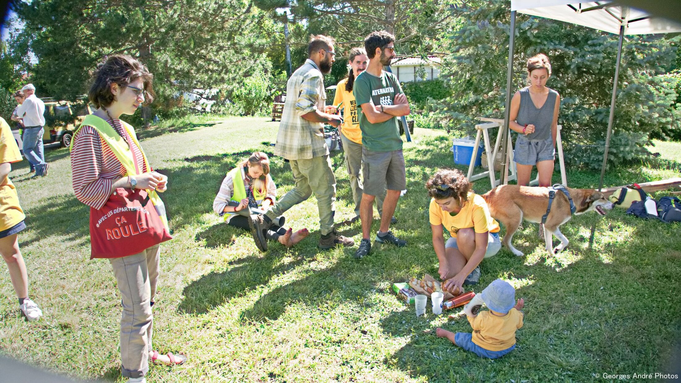 Au soleil pas encore très haut dans le ciel, les militant·es écoutent, commentent, proposent, discutent pour se mettre au point, au parfum et élaborer une décision collective.