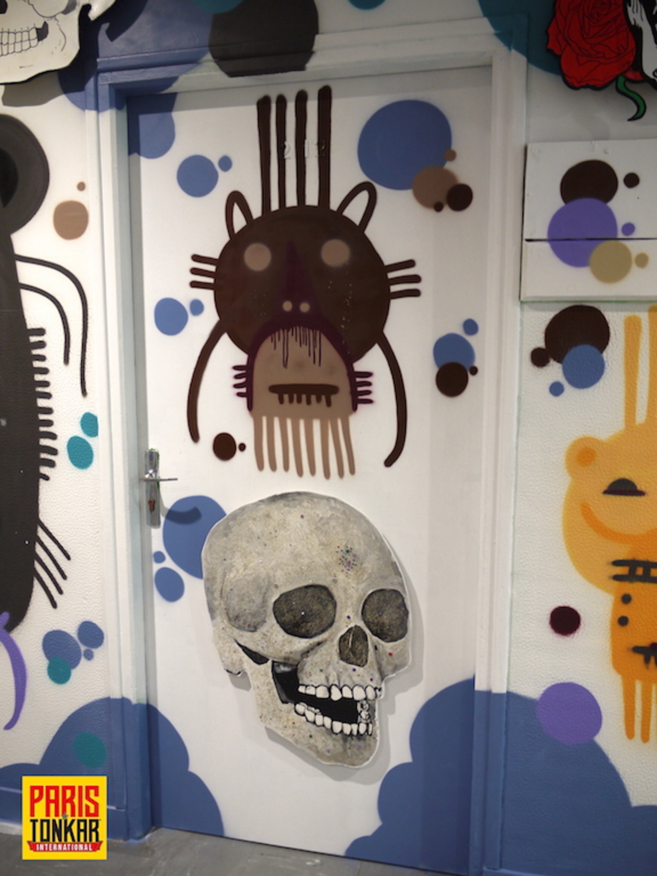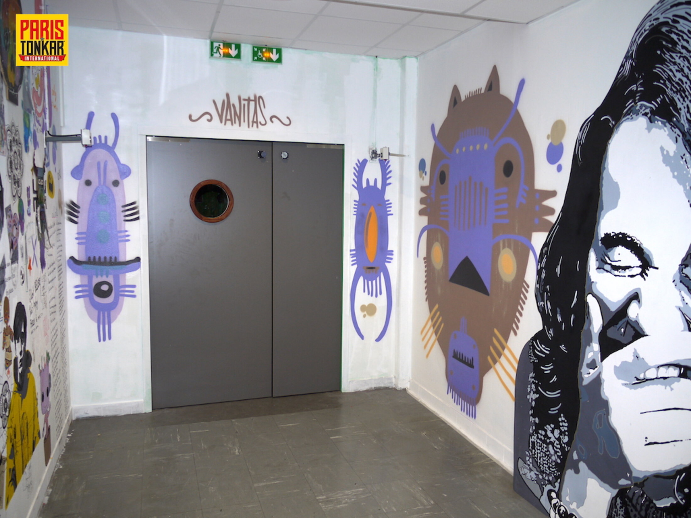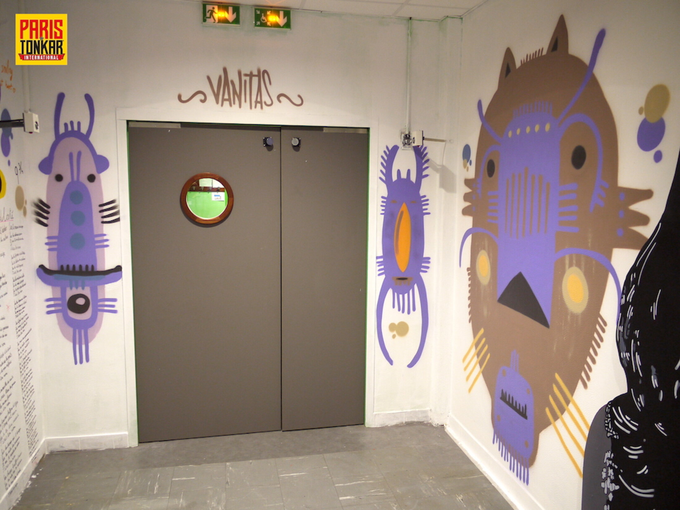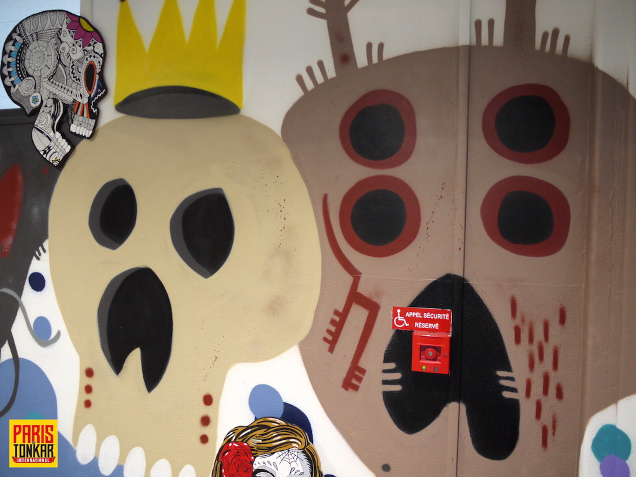 A l’initiative du professeur d’arts plastiques du collège Charles de Gaulle à Plœmeur, Tarek est intervenu dans les couloirs avec des élèves sur le thème des vanités. Il a également peint des masques. Le 29 juin lors de l’inauguration des murs réalisés au 2e étage, il peindra deux masques dans la cour du collège.