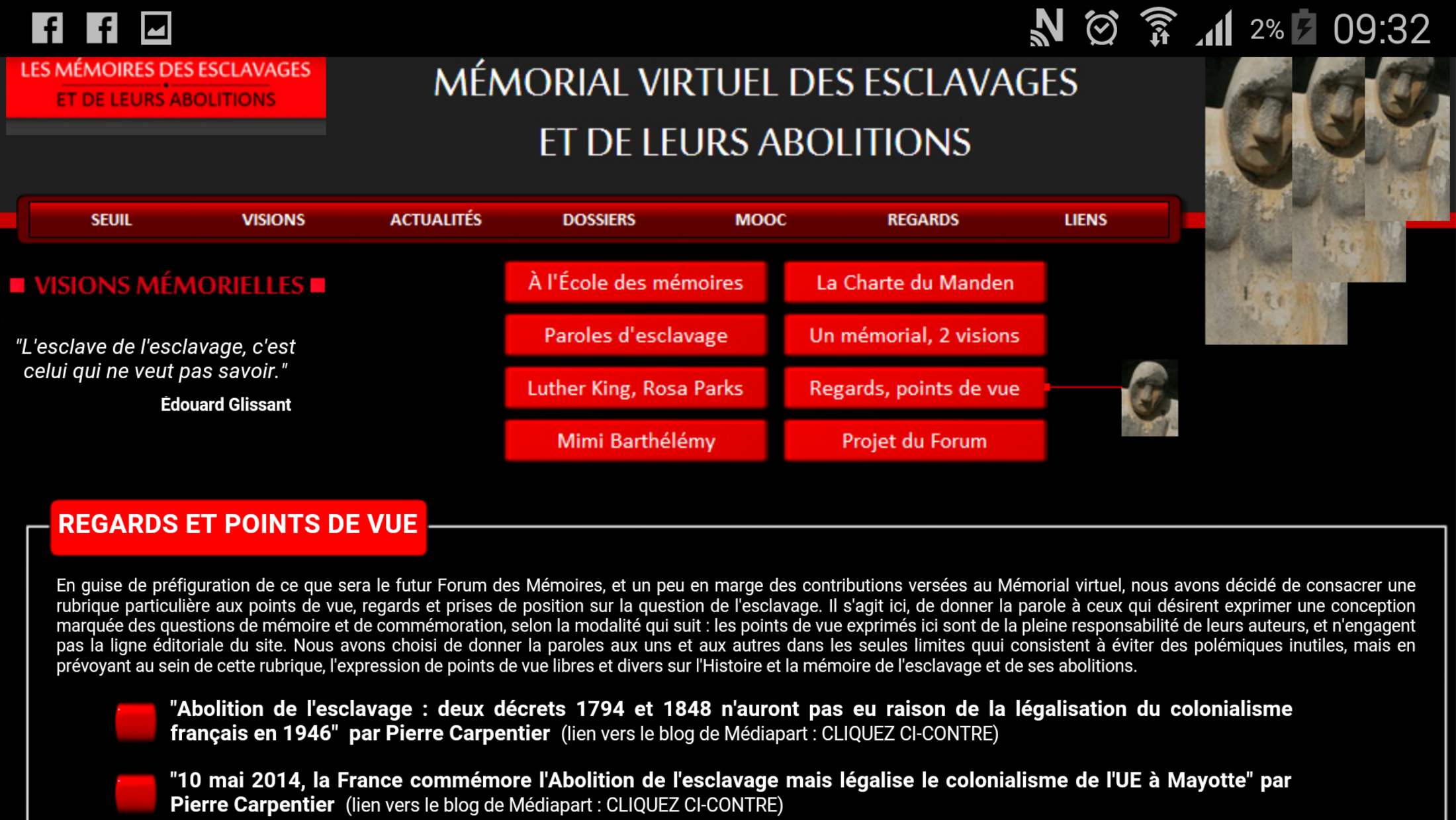 MÉMOIRES DE L'EAU. "Les songes de nos vivants prennent à l'eau, la source et le sel ! À la terre, le sang et la force ! Au vent, nos sacrifices livrés en confiance. Assez de ces supplices ! Les poèmes ne sont pas fait pour les chiens ! Ils portent nos libertés souveraines ! lls sont le parfum de nos royaumes ! Sois vaillant à la tâche attaquante que nous te confions ! Les dominations nous mitraillent encore mais tu répondras à ce juste tourment du devoir ou détourne toi à jamais de notre appel ! En toutes directions que tu choisisses tu nous reviendras et nos comptes te seront remis ! Pour notre générosité, tiens en partage le calme des eaux !". (Extrait "d'IRACOUBO. L'Épicentre des Eaux", 2014). " MAIS ALORS, LA GUYANE ? Une infinité que nous imaginons gorgée d'eaux et de bois. Les Guyanais demandent que les Martiniquais et les Guadeloupéens les laissent en paix. Nous avons pas mal colonisé de ce côté. C'est pourtant comme une attache secrète que nous avons avec le Continent. Une attache poétique, d'autant plus chère que nous y renonçons. D'autant plus forte que fort sera le poids des Guyanais dans leur pays. Des chants comme des rapides à remonter, des poèmes comme autant de bois sans fond." ÉDOUARD GLISSANT in LE DISCOURS ANTILLAIS (P 775).