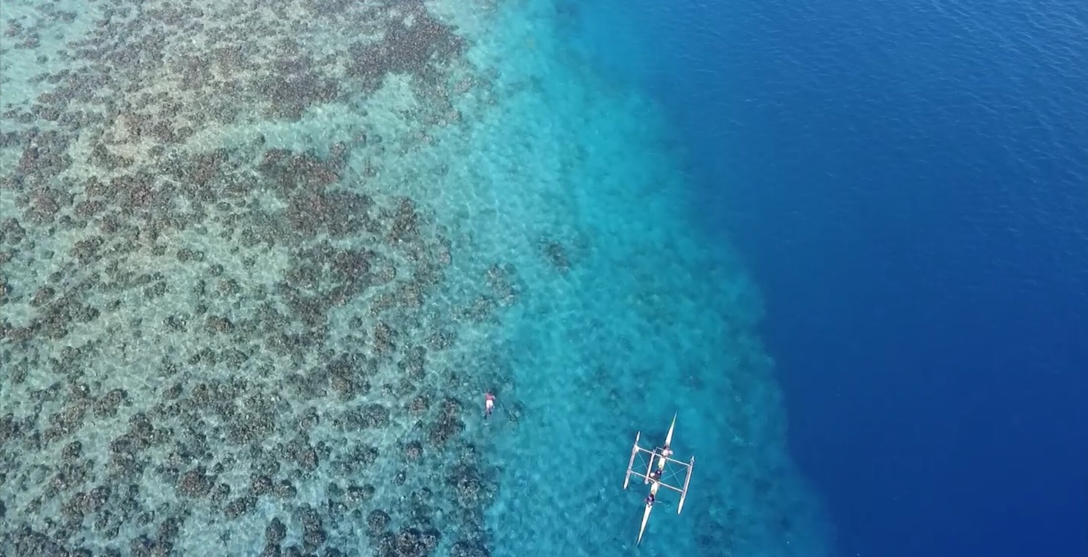 Le nageur Marquisien de très longues distances Ismaël PATU Huukena, en son habitat des eaux, suivi par son Va'a (pirogue polynésienne). Kaoha Nui ! au Capitaine Adrien Bonno ! Et au photographe Antoine Gid !