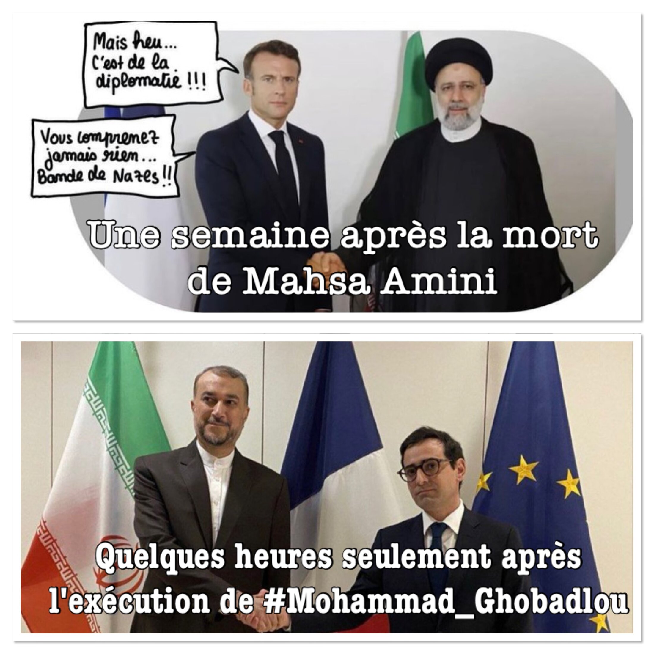 Une semaine après l’assassinat de #MahsaAmini, Manu « paluche » serrait la main du président du régime… Encore mieux (non) quelques heures après l’exécution de #Mohammad_Ghobadlou, un manifestant innocent, Séjourné fonce serrer la pince au min des affaires étrangères du régime… Changez rien…