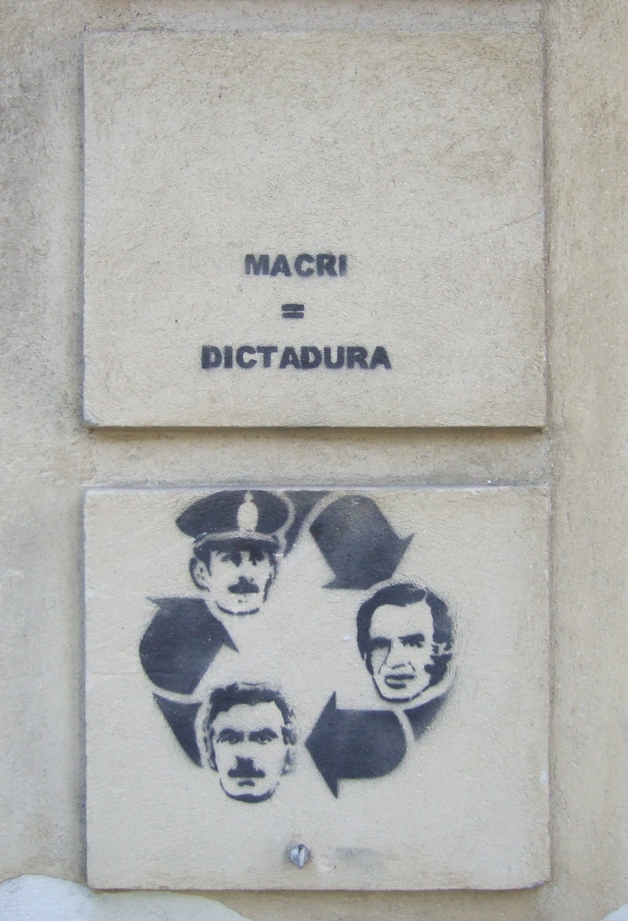 [Sur l'image, de haut en bas, les portraits de Videla, Menen et Macri]