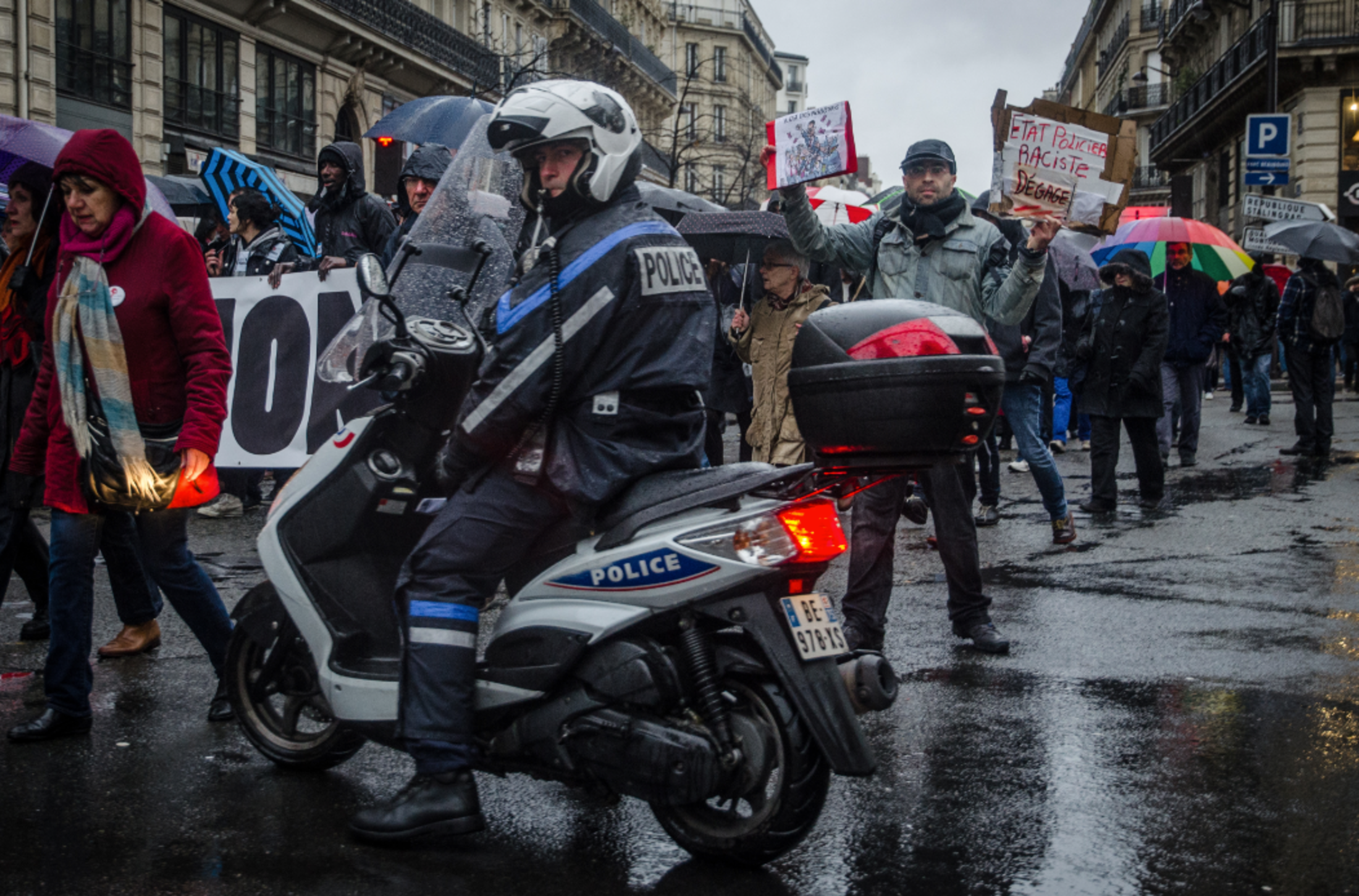 Les gouttes dégoulinent sur les visages et les parapluies. A Paris, la pluie n’a pas empêché plusieurs milliers d'opposants à l’état d’urgence de battre le pavé, samedi 30 janvier, contre la politique sécuritaire du gouvernement. Portfolio de la marche.