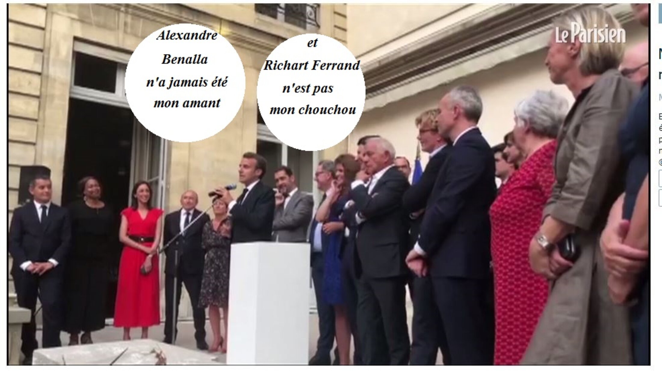 [i] On voit sur cette vidéo navrante que, si quelques fayots rient ostensiblement à ce bon mot du patron, une ministre plus âgée, qui est déjà en proie à la consternation, cherche désespérément derrière elle un soutien moral, le regard d’un collègue qui partagerait ses inquiétudes, une mine aussi déconfite que la sienne. https://www.lemonde.fr/emmanuel-macron/video/2018/07/25/macron-sur-l-affaire-benalla-s-ils-cherchent-un-responsable-le-seul-responsable-c-est-moi_5335631_5008430.html
