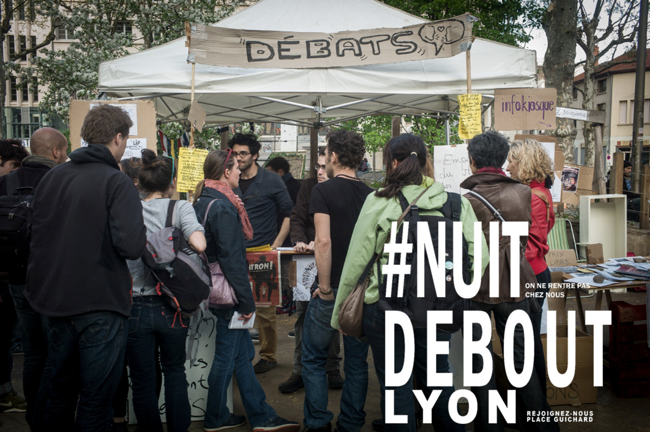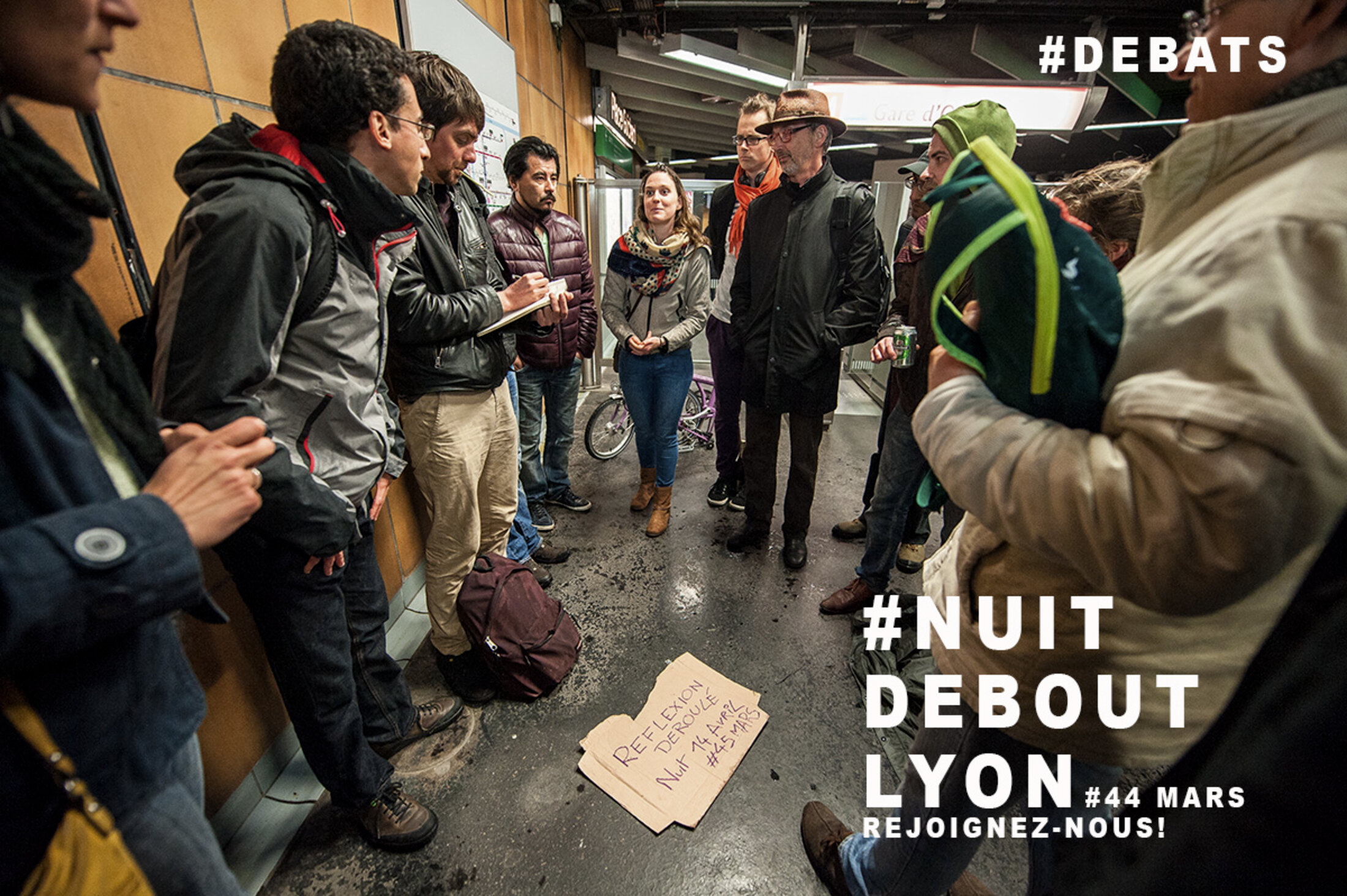 Jeudi 44 mars les débats continuent à l'abri de la pluie dans la station de métro place Guichard.