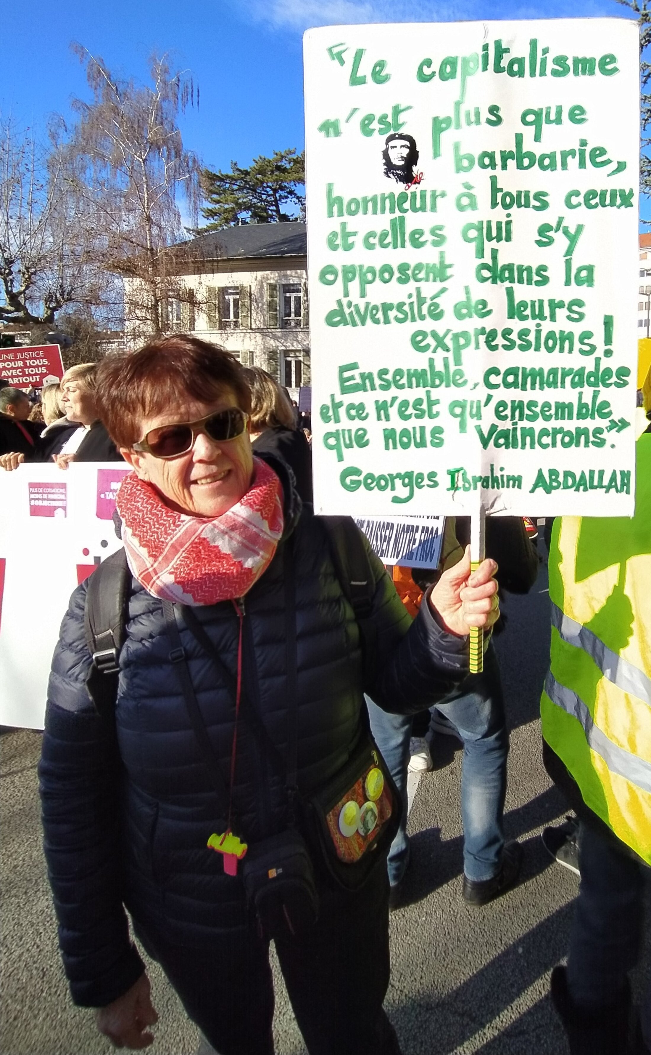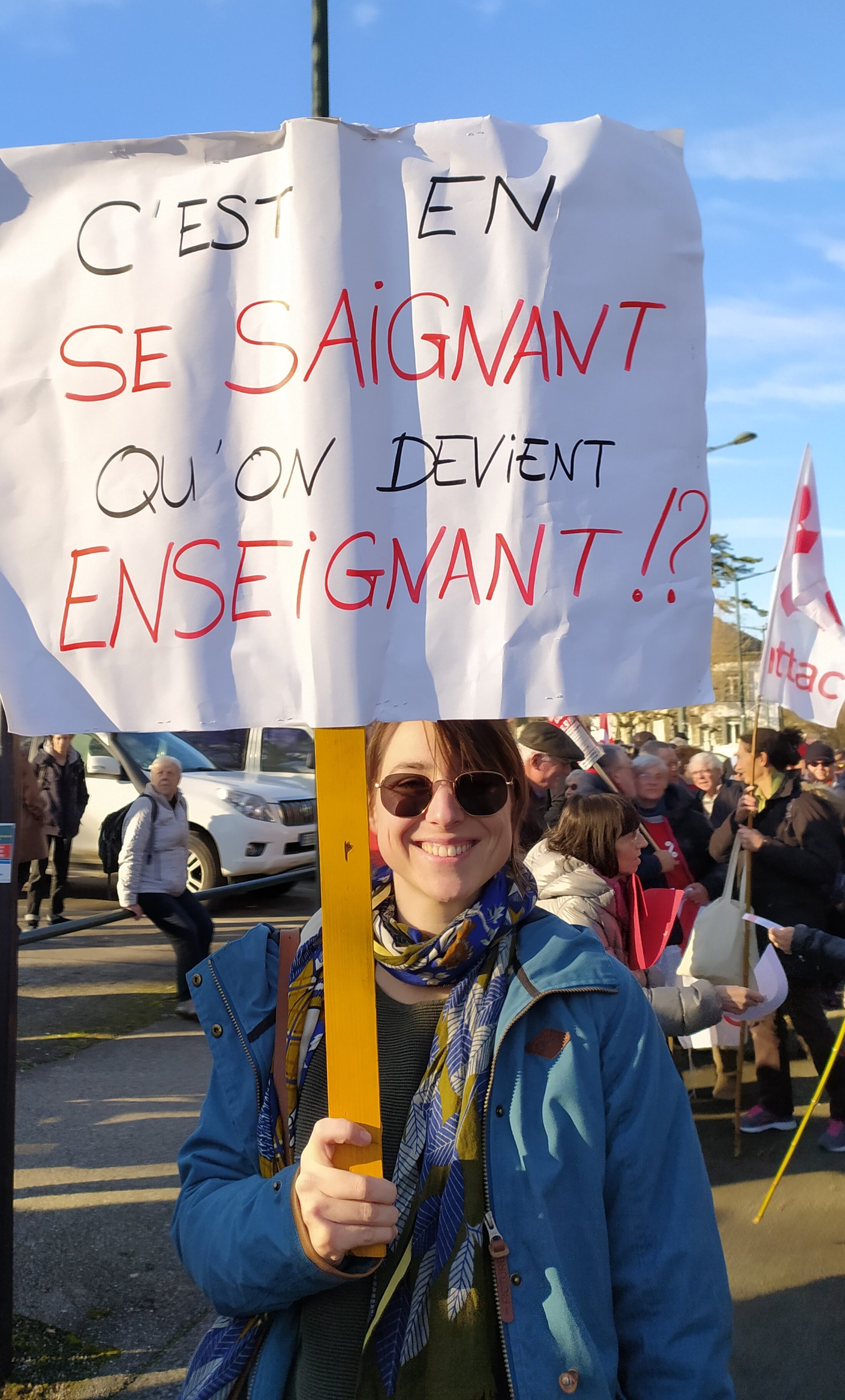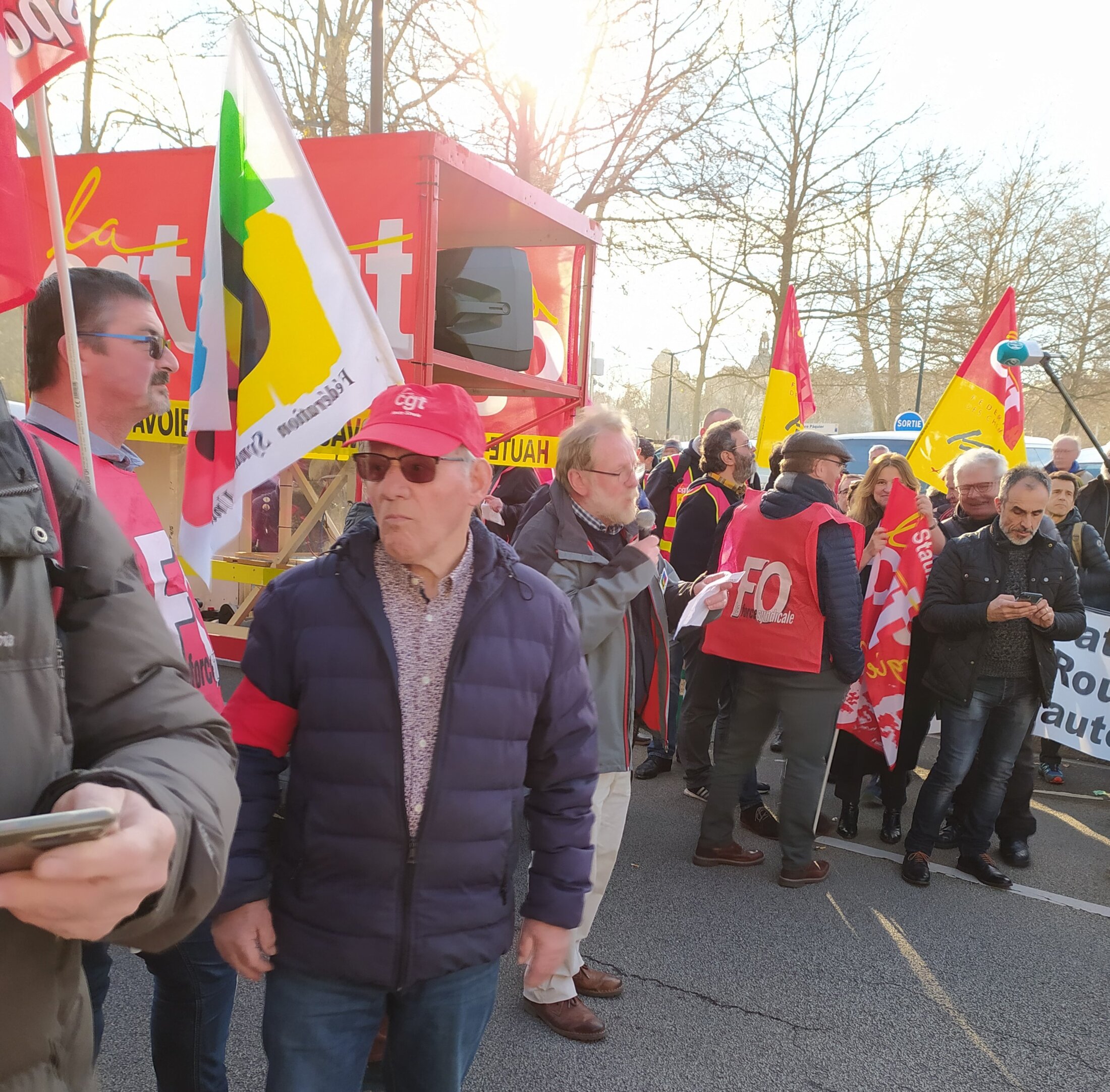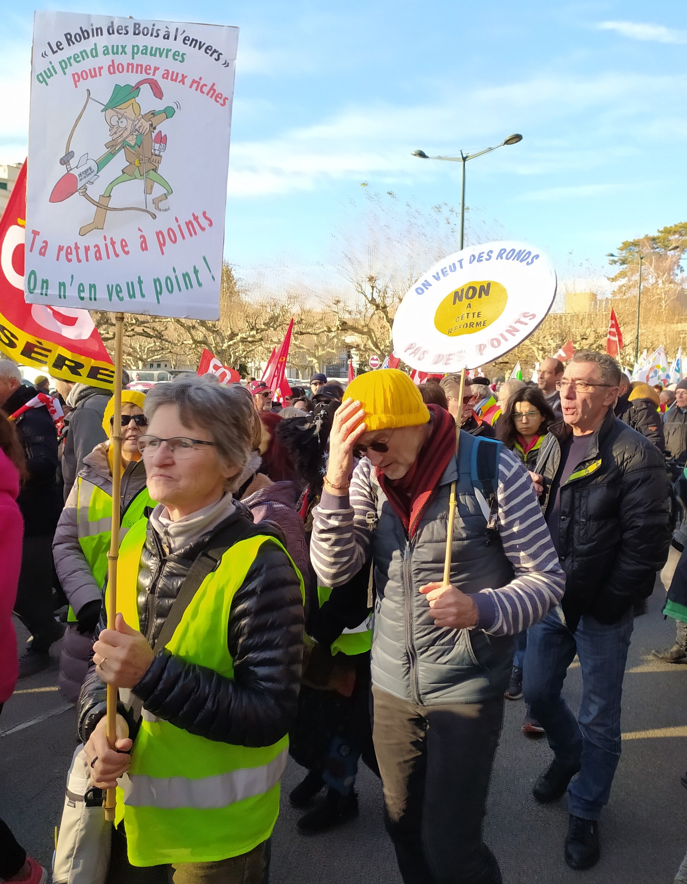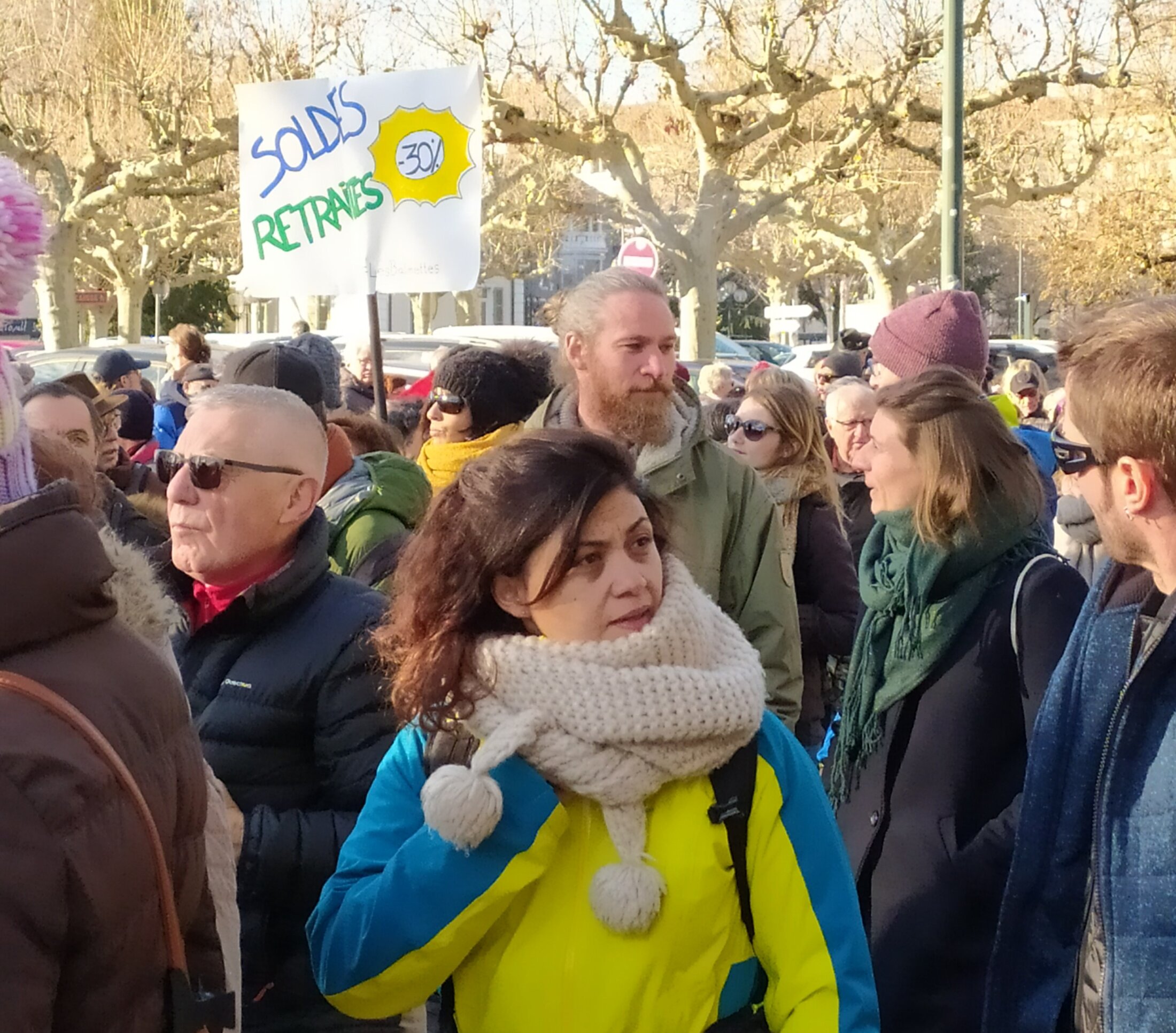 - Agrandissement : Illustration 9  - Des Femmes, des Hommes, des Enfants, des salarié(e)s, des retraité(e)s, des jeunes, des chômeurs, des syndicalistes, des gilets jaunes, des stylos rouges, des politiques… Une ambiance joviale et très déterminée dans un climat morose : chansons, danses, sifflets, fumigènes, pétards, slogans, musique, drapeaux, djembé, guitare, tambour, porte-voix …