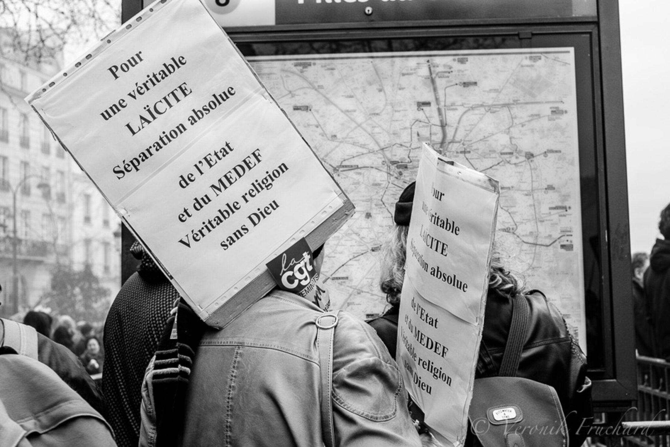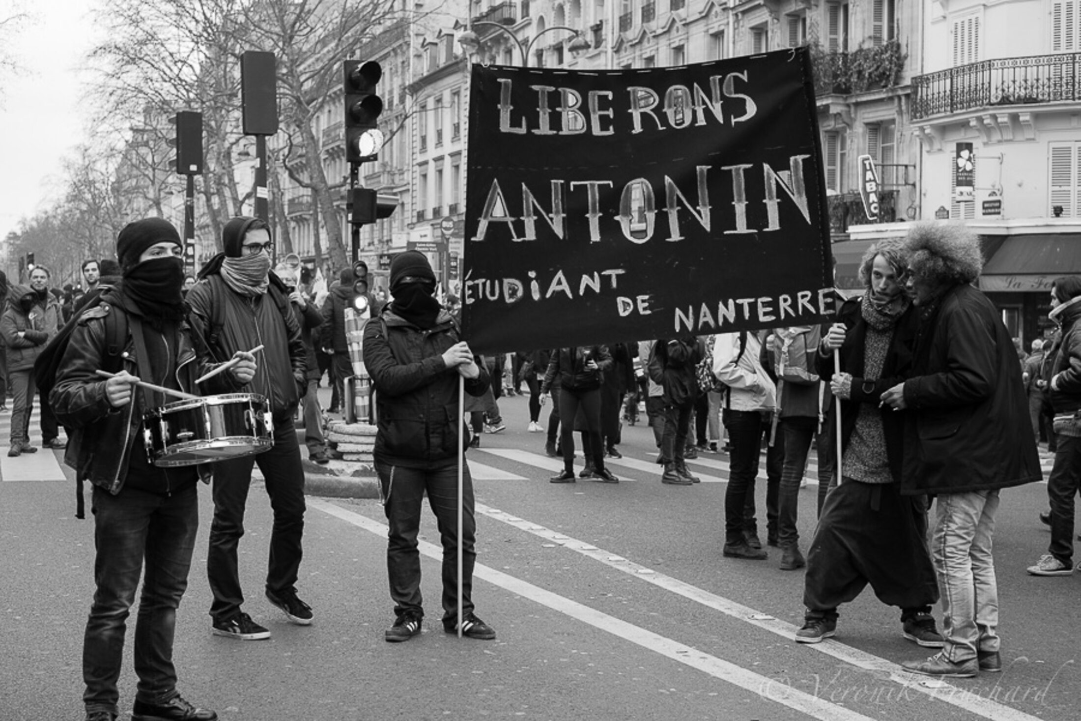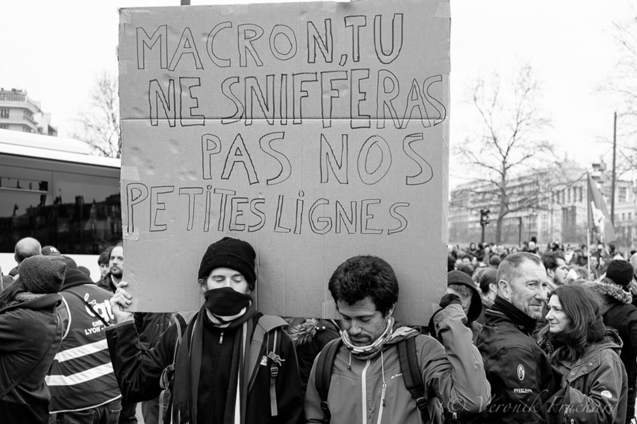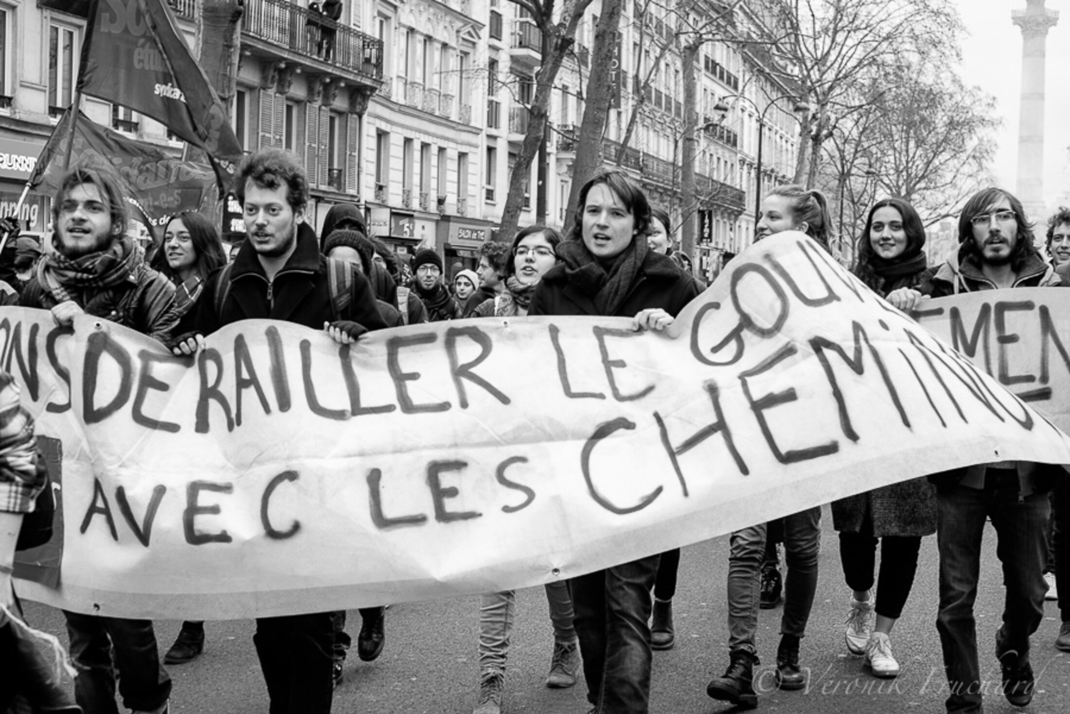 Manifestation à Paris contre Macron et ses réformes gouvernementales qui visent la SNCF et le Service public - Les cheminots, les fonctionnaires et aussi les étudiants étaient dans la rue ce 22 mars 2018 - Portfolio
