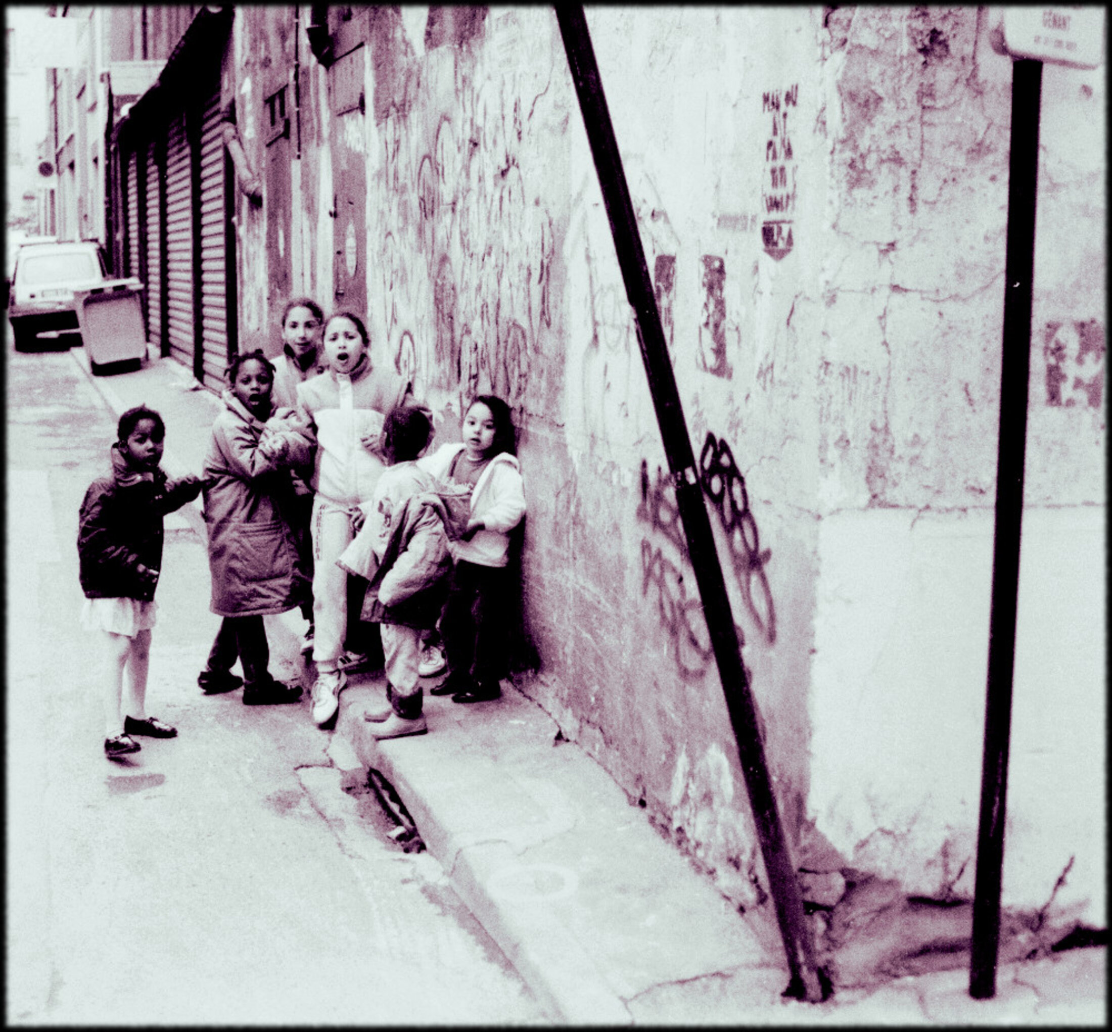 Quartier Bastille, Paris, au coin d'une rue délabrée.