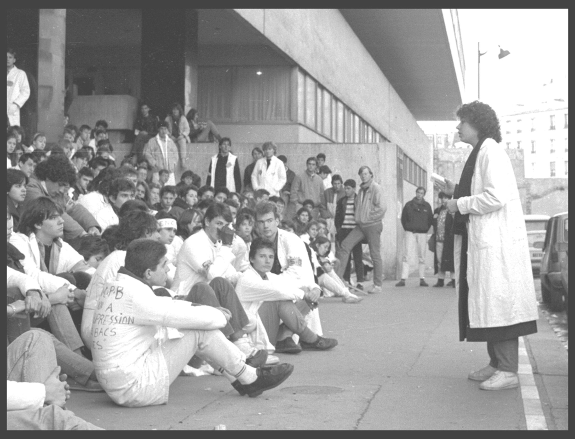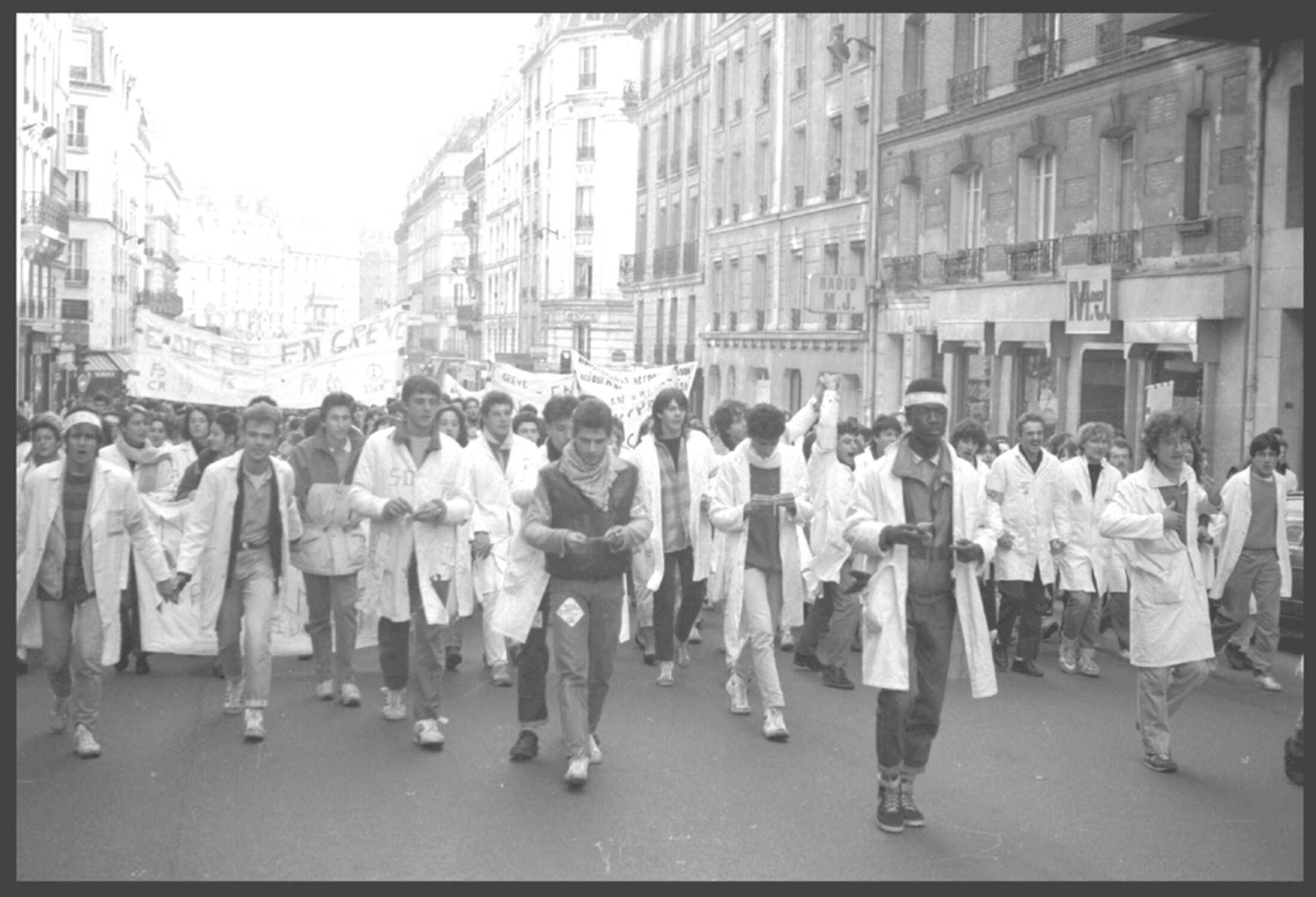 Les blouses blanches de l'ENCPB défilent contre la loi Devaquet dans le quartier des écoles, une première !