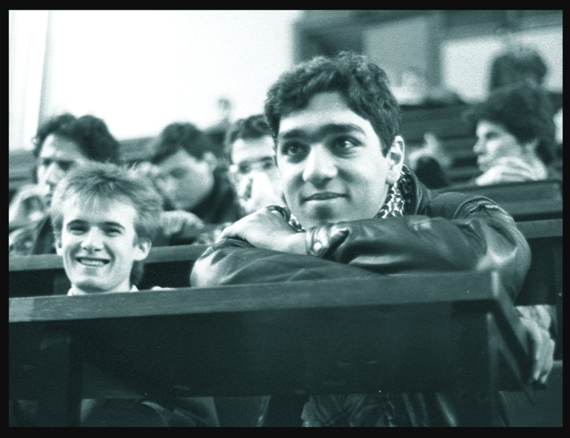 Soulèvement de novembre 1986 contre la suppression des filières de bacs technologiques prévue dans la loi dite Devaquet; AG au pied de l'Ecole Nationale de Chimie, Physique et Biologie (ENCPB - aujourd'hui dénommé Lycée P.-G- de Gennes) de Paris...quelques heures après qu'avec deux copains j'eus diffé des tracts de la JC appelant à la grève. Ce lycée élitiste n'était pas particulièrement un repaire d'agitateurs, mais il faut préciser que le corps enseignant y était très actif et c'est son action en direction des élèves qui fut déterminante pour créer les conditions qui menèrent au blocage qui dura près de 10 jours.