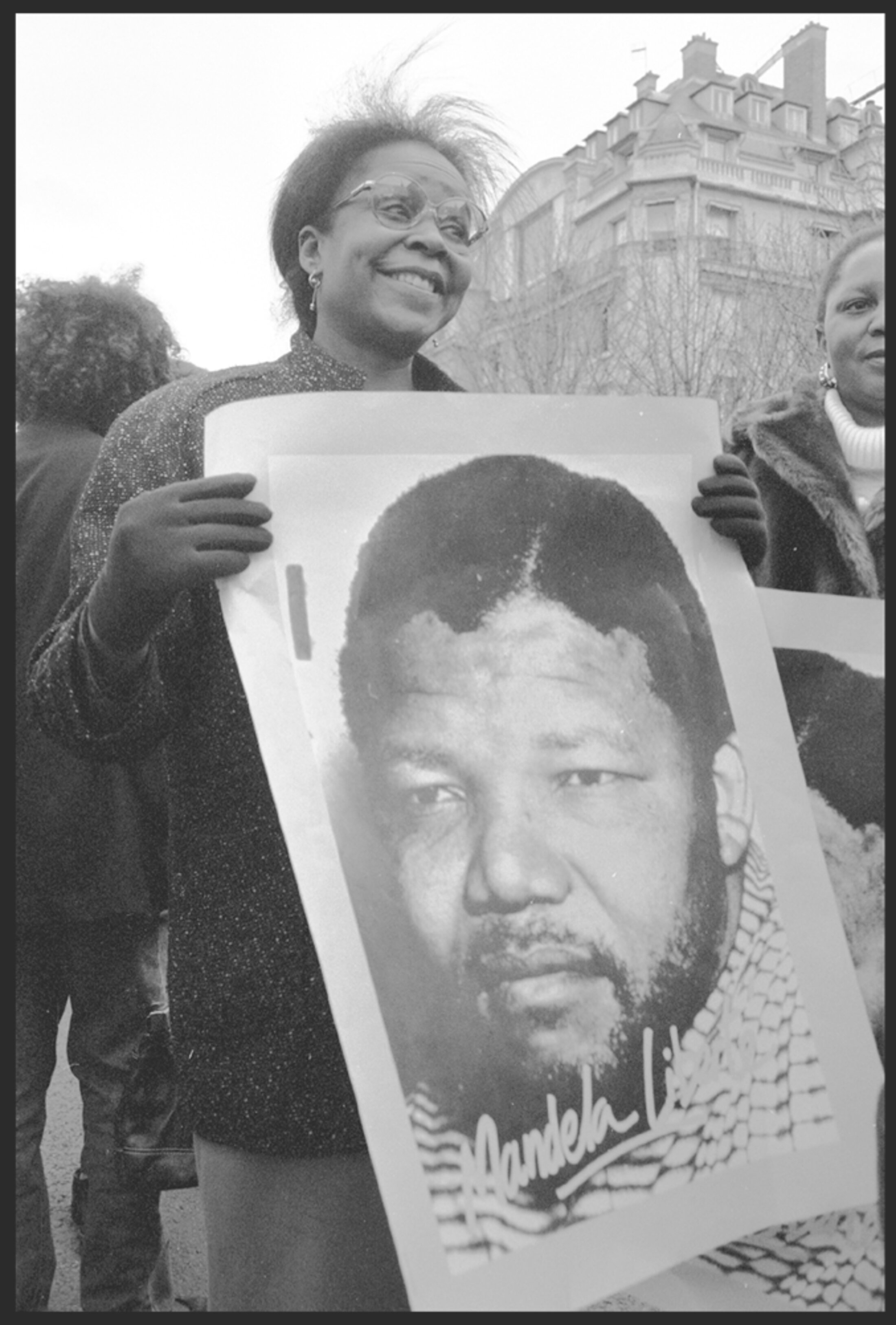 réactionnairefrançaise(et quelques socialos aussi)baignait allègrement il y avait un mouvement anti-appartheid peu entendu et peu médiatisé qui réclamait la libération sur le champ de N. Mandela. Pas beaucoup de gens ce jour ci pour faire la fête devant la lugubre ambassade d'Af. du Sud; les habitués, et surtout les gros contingents de la JC, ceux qui rendirent dèjà hommage à Dulcie September, représentante de l'ANC assassinée à Paris. A cette époque le PS était opposé à tout embargo contre l'Apartheid. La libération de Mandela a permis de comtempler l'art du retournement de veste des socialistes, un art qu'ils maîtrisaient parfaitement à l'époque.Agrandissement : Illustration 8