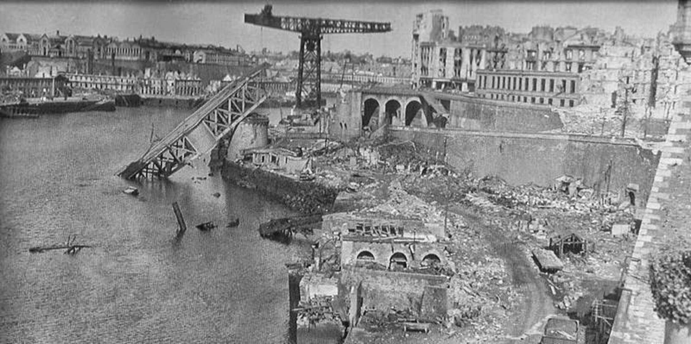 Le quartier de Quiliverzan en 1952, il y aura en fait trois tours pour reloger les Brestois en baraques. Le pauvre hère poussant son landau, vide ? interpelle, cette photo fait penser à celles de Doisneau.