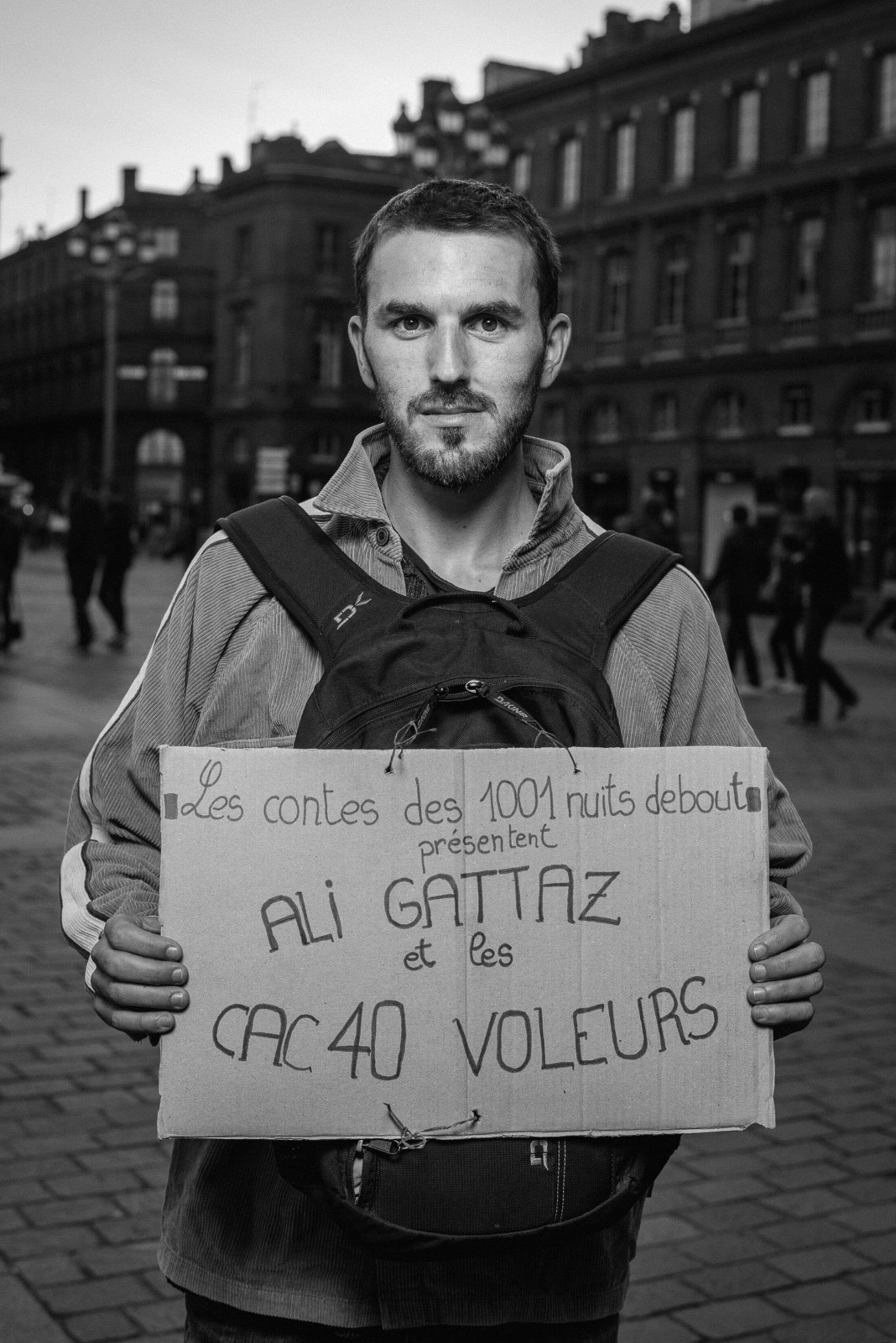 Série de portraits réalisés en marge de la journée Global Debout du 15 mai 2016, place du Capitole, à Toulouse. Les mots ou la phrase sont choisis et écrits par la personne photographiée.