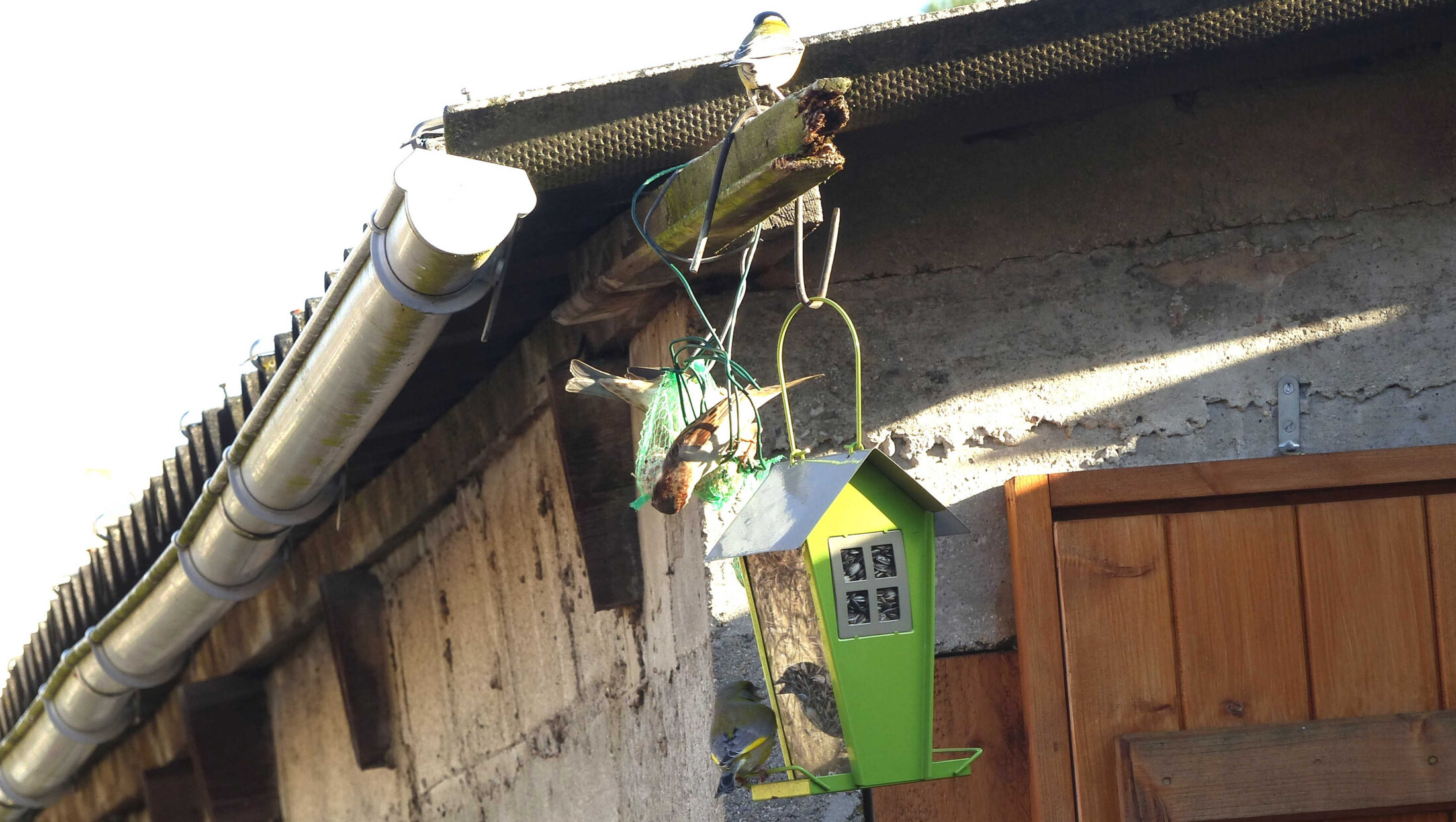 Quand bien même il ne mange pas de graine, il leur chante la sérénade depuis la gouttière de l'établi.