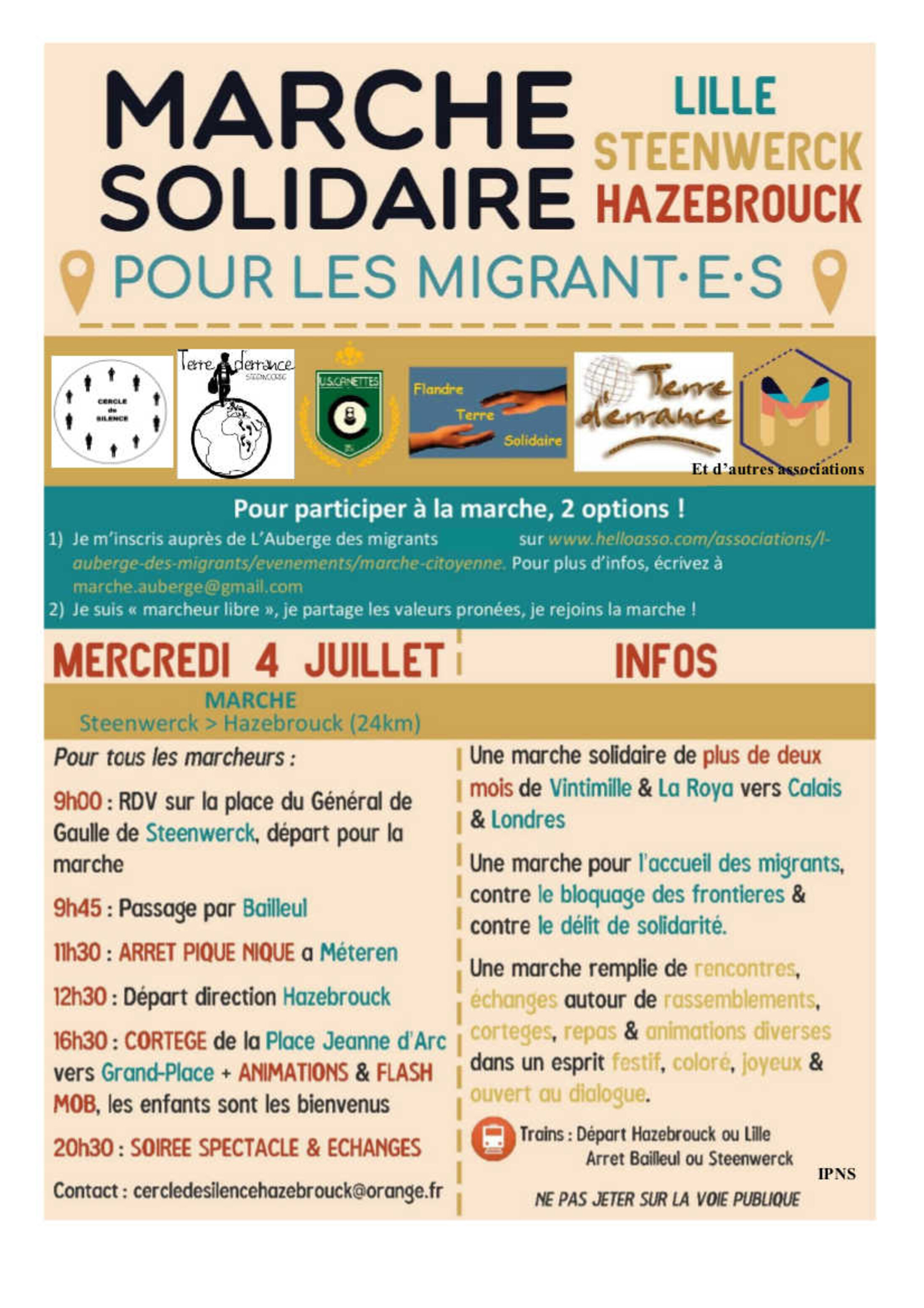 - Vers 16h30 : arrivée des marcheurs place Jeanne d'Arc Hazebrouck : Accompagnement par ceux qui le souhaitent jusque la grand place avec les djembés.