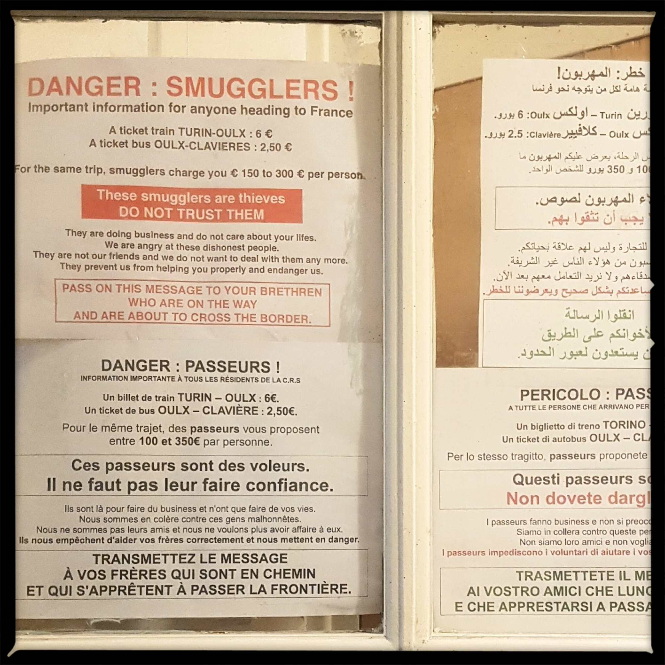 A peine séchées, les bottes, comme les manteaux, les gants et les bonnets repartent discrètement en Italie pour équiper d'autres aventuriers. Seuls les hommes et les femmes, surtout lorsqu'ils ont la peau foncée, galèrent à passer les frontières. « J'ai pris le bus, on m'a contrôlé et renvoyé en arrière. Le lendemain j'ai essayé par les montagnes mais j'ai pris peur et j'ai fait marche arrière au milieu de la nuit. Finalement je suis passé à pied en plein jour comme un touriste avec une doudoune violette et des lunettes. J'ai eu de la chance.» O. égyptien, livreur à vélo, depuis 12 ans en région parisienne, renvoyé chez lui après un contrôle de routine et après avoir passé 10 jours en centre de rétention.Agrandissement : Illustration 11